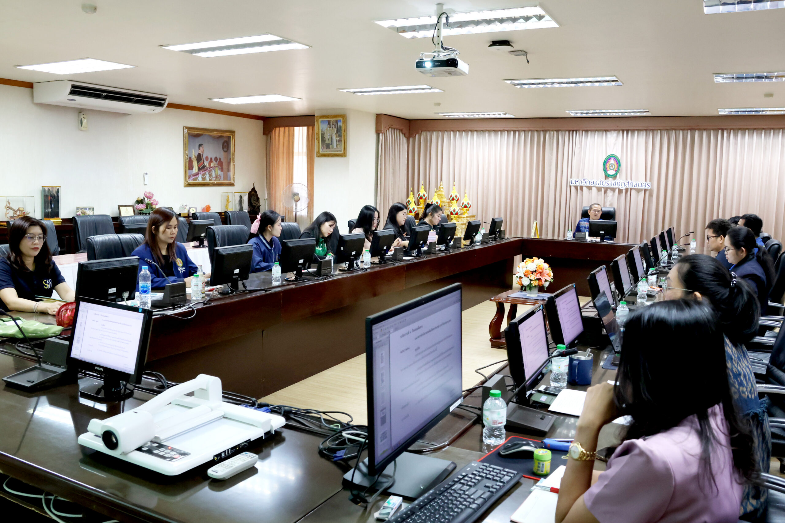 วันพฤหัสบดีที่ 12 กุมภาพันธ์ พ.ศ. 2569 เวลา 09.00 น. กองนโยบายและแผน จัดประชุมบุคลากรกองนโยบายและแผน ประจำปีงบประมาณ พ.ศ. 2569 ครั้งที่ 2/2569 ณ ห้องประชุมสรัสจันทร ชั้น 2 อาคาร 10 มหาวิทยาลัยราชภัฏสกลนคร โดย ศาสตราจารย์ ดร.ทศวรรษ สีตะวัน รองอธิการบดี เป็นประธานการประชุมและพิจารณาวาระร่วมกับกับบุคลากรกองนโยบายและแผน ซึ่งมีวาระเรื่องเสนอเพื่อทราบ จำนวน 3 วาระ วาระเรื่องเสนอเพื่อพิจารณา จำนวน 2 วาระ โดยมีวัตถุประสงค์เพื่อการบริหารจัดการกองนโยบายและแผน เป็นไปด้วยความเรียบร้อยและมีประสิทธิภาพสูงสุด