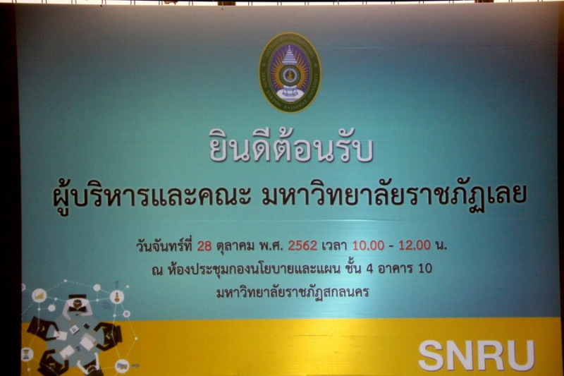 เมื่อวันที่ 28 ตุลาคม พ.ศ. 2562 เวลา 10.00 น. นางเสาวนีย์ วิจิตรกุลสวัสดิ์ ผู้อำนวยการกองกลาง นำคณะ เข้าศึกษาดูงานด้านการบริหารงานกองทุนสวัสดิการ สำหรับพนักงาน ในสถาบันอุดมศึกษาและพนักงานราชการ โดยมีท่าน รศ.ดร.ชนินทร์ วะสีนนท์ ที่ปรึกษาอธิการบดี ด้านการวางแผนและงบประมาณ ผศ.ดร.กาญจนา วงษ์สวัสดิ์ รองอธิการบดีฝ่ายวางแผนและประกันคุณภาพ นายเกษม บุตรดี ผู้อำนวยการสำนักงานอธิการบดี รักษาการในตำแหน่งผู้อำนวยการกองนโยบายและแผน และผู้ที่เกี่ยวข้อง ให้การต้อนรับ พร้อมให้ข้อมูล และตอบข้อสงสัย