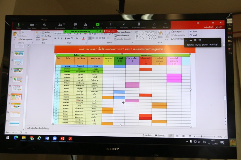 กองนโยบายและแผน จัดการประชุมการชี้แจงแนวทางการจัดทำข้อเสนอโครงการ U2T ระยะที่ 2 ผ่านโปรแกรม ZOOM ขึ้น ในวันพฤหัสบดีที่ 4 พฤศจิกายน พ.ศ. 2564 เวลา 15.30 – 16.00 น. ณ ห้องประชุมสร้อยสุวรรณา ชั้น 3 อาคาร 10 มหาวิทยาลัยราชภัฏสกลนครโดยได้รับเกียรติจาก ผศ.ชาคริต ชาญชิตปรีชา รักษาราชการแทนอธิการบดีมหาวิทยาลัยราชภัฏสกลนคร เป็นประธานเปิดโครงการ จากนั้น แจ้งพื้นที่จ้างงานโครงการ U2T ระยะ 2 ของมหาวิทยาลัยราชภัฏสกลนคร และแบบฟอร์มข้อเสนอโครงการยกระดับเศรษฐกิจและสังคมหลังโควิดด้วยยุทธศาสตร์ BCG : U2T for BCG and Regional Development (U2T) ระยะ 2 โดย ผศ.ดร.สมบูรณ์ ชาวชายโขง รองอธิการบดีฝ่ายวางแผนและประกันคุณภาพ ให้กับผู้บริหาร ทุกคณะ และผู้อำนวยการสถาบันวิจัยและพัฒนา ประธานตำบล เพื่อเลือกพื้นที่จ้างงานโครงการ U2T ระยะ 2 และจัดทำแบบฟอร์มข้อเสนอโครงการยกระดับเศรษฐกิจและสังคมหลังโควิดด้วยยุทธศาสตร์ BCG ส่งกองนโยบายและแผน เพื่อกองนโยบายและแผนจะได้ดำเนินการต่อไป