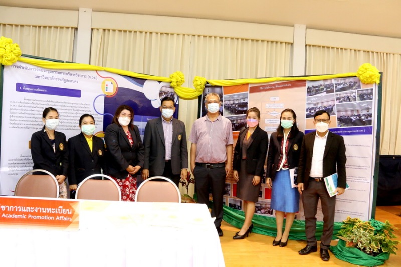 วันพุธที่ 12 มกราคม 2565 เวลา 08.30 – 16.30 น. มหาวิทยาราชภัฏสกลนคร โดยกองนโยบายและแผน สำนักงานอธิการบดี จัดนิทรรศการแสดงผลงานการจัดการความรู้มหาวิทยาลัยราชภัฏสกลนคร ประจำปีงบประมาณ 2564 (SNRU KM share & learn 2021) ณ หอประชุมจามจุรี 1โดย ผศ.ชาคริต ชาญชิตปรีชา รักษาราชการแทนอธิการบดี กล่าวเปิดงาน และ ผศ.ดร.สมบูรณ์ ชาวชายโขง รองอธิการบดีฝ่ายวางแผนและประกันคุณภาพ กล่าวรายงาน จากนั้นเป็นการบรรยายพิเศษ “มหาวิทยาลัยกับการพัฒนาท้องถิ่น” โดย ศ.ดร.ทศวรรษ สีตะวัน รองอธิการบดีฝ่ายวิจัยและนวัตกรรม จากนั้นผู้บริหารร่วมชมนิทรรศการแสดงผลงานการจัดการความรู้ KM ของ 12 ส่วนราชการภายในมหาวิทยาลัย รวม 18 องค์ความรู้ ช่วงบ่ายเป็นกิจกรรมเวทีแลกเปลี่ยนเรียนรู้ ในเรื่องปัญหาในการเรียนการสอน/การวิจัย/การบริการวิชาการ และการปฏิบัติงานในช่วงสถานการณ์การแพร่ระบาดของ Covid-19 และปัจจัยที่ทำให้การดำเนินงาน KM ในปีที่ผ่านมาประสบความสำเร็จคืออะไร และในหน่วยงานต้องการให้มหาวิทยาลัยสนับสนุนในด้านใด ซึ่งการจัดกิจกรรมในครั้งนี้จัดในรูปแบบ Onsite และถ่ายทอดสดสัญญาณภาพทางเพจ Facebook ม.ราชภัฏสกลนคร โดยมีคณะผู้บริหาร คณะผู้นำเสนอ เข้าร่วมภายในงาน