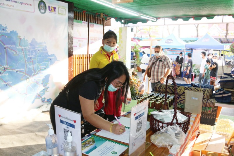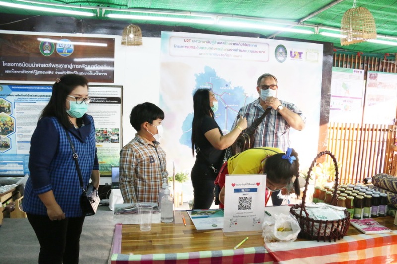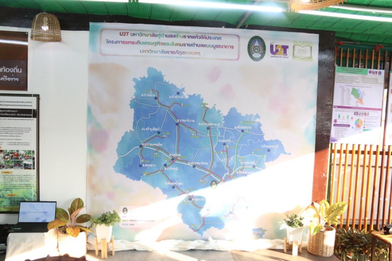 มหาวิทยาลัยราชภัฏสกลนคร มอบหมายให้ กองนโยบายและแผน จัดนิทรรศการนำเสนอผลงาน ผลผลิต/ผลลัพธ์ โครงการยกระดับเศรษฐกิจและสังคมรายตำบลแบบบูรณาการ U2T (1 ตำบล 1 มหาวิทยาลัย) ของมหาวิทยาลัยราชภัฏสกลนคร การดำเนินการของ อว. ส่วนหน้า จังหวัดสกลนคร และการดำเนินการภายใต้โครงการพัฒนาคุณภาพชีวิตและยกระดับรายได้ให้กับคนในชุมชนฐานราก (ศาสตร์พระราชา) ในงาน “งานรวมน้ำใจไทสกล จังหวัดสกลนคร ประจำปี พ.ศ. 2565” ระหว่างวันที่ 25 กุมภาพันธ์ – 3 มีนาคม 2565โดย ผศ.ดร.สมบูรณ์ ชาวชายโขง รองอธิการบดีฝ่ายวางแผนและประกันคุณภาพ ดร.วินิธา พาณิชย์ ผู้ช่วยอธิการบดีฝ่ายวางแผนและพันธกิจสัมพันธ์ นางอมรรัตน์ ตุ่นกลิ่น รักษาการในตำแหน่งผู้อำนวยการกองนโยบายและแผน และบุคลากรกองนโยบายและแผน ดำเนินการประสานผู้ประสานงานตำบล นำสินค้าหรือผลิตภัณฑ์ของตำบล เข้าร่วมจัดแสดงผลงานนิทรรศการภาพรวมโครงการยกระดับเศรษฐกิจและสังคมรายตำบลแบบบูรณาการ U2T (1 ตำบล 1 มหาวิทยาลัย) ของมหาวิทยาลัยราชภัฏสกลนคร พร้อมดำเนินการในส่วนที่เกี่ยวข้อง ในวันศุกร์ที่ 25 กุมภาพันธ์ 2565 เวลา 18.30 น. ผศ.ดร.สมบูรณ์ ชาวชายโขง รองอธิการบดีฝ่ายวางแผนและประกันคุณภาพ เป็นตัวแทนมหาวิทยาลัยราชภัฏสกลนคร รายงานผลการดำเนินการในภาพรวมของมหาวิทยาลัยราชภัฏสกลนคร ต่อ นางจุรีรัตน์ เทพอาสน์ ผู้ว่าราชการจังหวัดสกลนคร และคณะติดตามผู้ว่าราชการจังหวัดสกลนคร จากนั้น ผศ.ดร.สมบูรณ์ ชาวชายโขง รองอธิการบดีฝ่ายวางแผนและประกันคุณภาพ ดร.วินิธา พาณิชย์ ผู้ช่วยอธิการบดีฝ่ายวางแผนและพันธกิจสัมพันธ์ และบุคลากรกองนโยบายและแผน ร่วมต้อนรับผู้ที่เข้ามาเยี่ยมชมซุ้มนิทรรศการมหาวิทยาลัยราชภัฏสกลนคร พร้อมจำหน่ายผลิตภัณฑ์ของแต่ละตำบล ฯลฯ