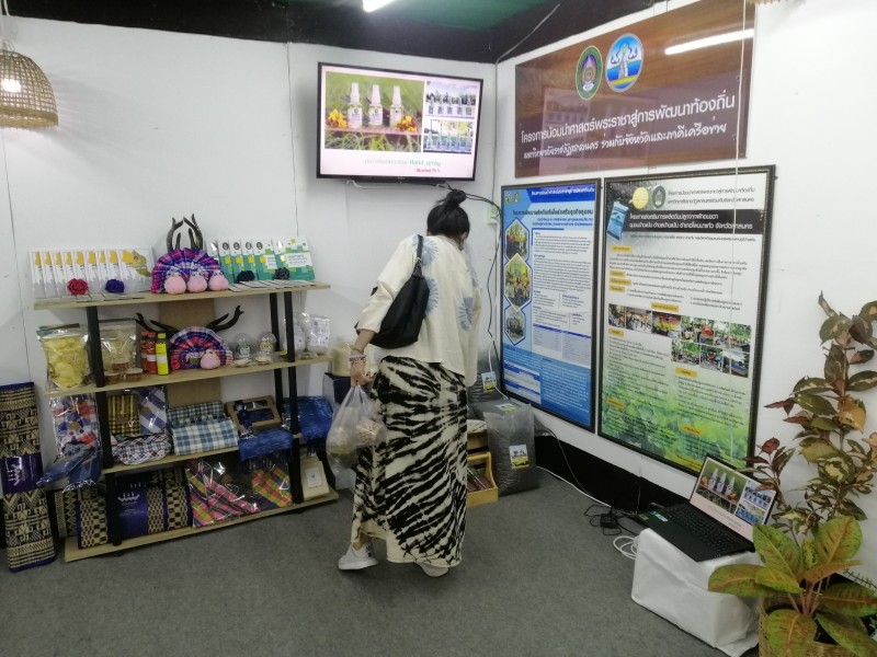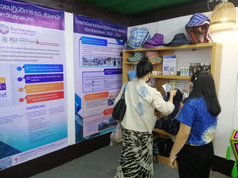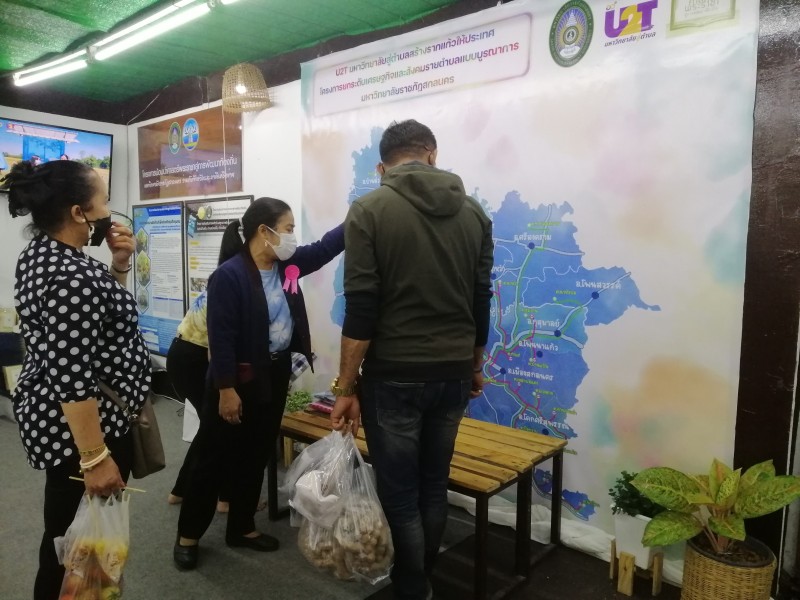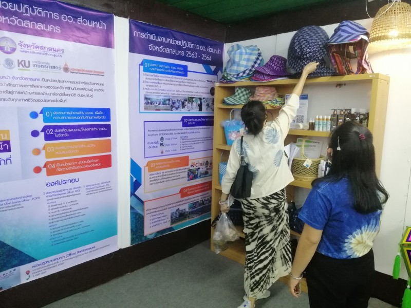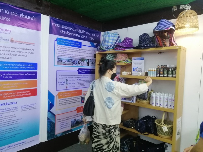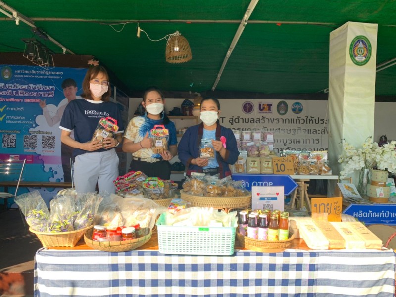 พร้อมต้อนรับผู้ที่เข้ามาเยี่ยมชมซุ้มนิทรรศการของมหาวิทยาลัยราชภัฏสกลนคร จำหน่ายผลิตภัณฑ์ของแต่ละตำบล และตอบข้อซักถามในประเด็นที่สนใจ การดำเนินการโครงการยกระดับเศรษฐกิจและสังคมรายตำบลแบบบูรณาการ U2T (1 ตำบล 1 มหาวิทยาลัย) ของมหาวิทยาลัยราชภัฏสกลนคร การดำเนินการของ อว. ส่วนหน้า จังหวัดสกลนคร และการดำเนินการภายใต้โครงการพัฒนาคุณภาพชีวิตและยกระดับรายได้ให้กับคนในชุมชนฐานราก (ศาสตร์พระราชา) ฯลฯ