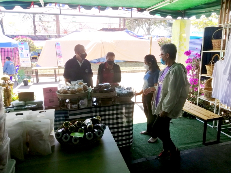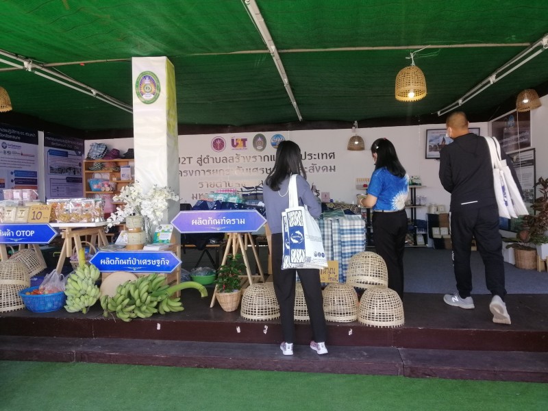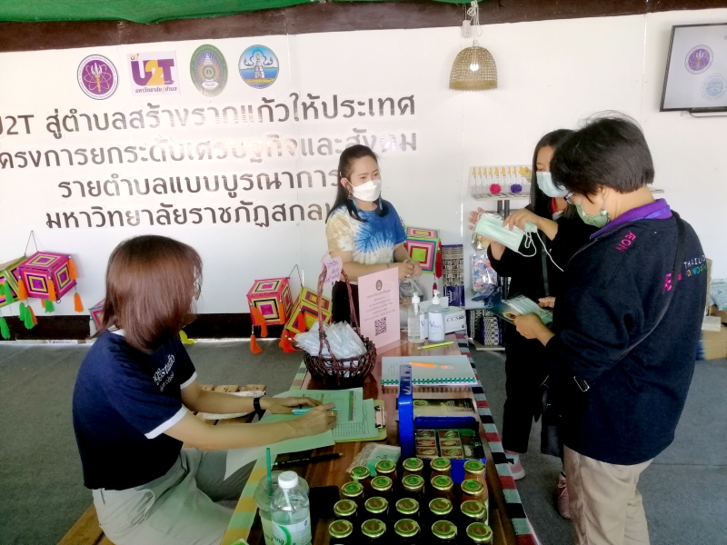 พร้อมต้อนรับผู้ที่เข้ามาเยี่ยมชมซุ้มนิทรรศการของมหาวิทยาลัยราชภัฏสกลนคร จำหน่ายผลิตภัณฑ์ของแต่ละตำบล และตอบข้อซักถามในประเด็นที่สนใจ การดำเนินการโครงการยกระดับเศรษฐกิจและสังคมรายตำบลแบบบูรณาการ U2T (1 ตำบล 1 มหาวิทยาลัย) ของมหาวิทยาลัยราชภัฏสกลนคร การดำเนินการของ อว. ส่วนหน้า จังหวัดสกลนคร และการดำเนินการภายใต้โครงการพัฒนาคุณภาพชีวิตและยกระดับรายได้ให้กับคนในชุมชนฐานราก (ศาสตร์พระราชา) ฯลฯ