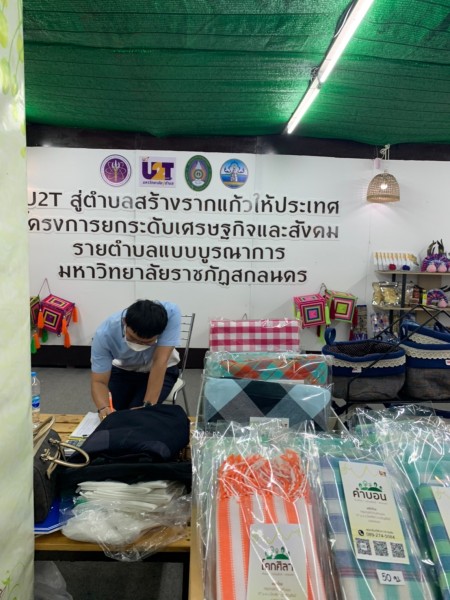 วันจันทร์ที่ 28 กุมภาพันธ์ 2565 เวลา 10.00 – 21.00 น. มหาวิทยาลัยราชภัฏสกลนคร โดย ผศ.ดร.สมบูรณ์ ชาวชายโขง รองอธิการบดีฝ่ายวางแผนและประกันคุณภาพ นายจักรกฤษ กองพิมาย นักวิเคราะห์นโยบายและแผนปฏิบัติการ และนางสาวนวลศิริ จันทร์สีเมือง เจ้าหน้าที่บริหารงานทั่วไป ปฏิบัติหน้าที่ดูแลความเรียบร้อยของซุ้มนิทรรศการของมหาวิทยาลัยราชภัฏสกลนคร ในวันที่ 4พร้อมต้อนรับผู้ที่เข้ามาเยี่ยมชมซุ้มนิทรรศการของมหาวิทยาลัยราชภัฏสกลนคร จำหน่ายผลิตภัณฑ์ของแต่ละตำบล และตอบข้อซักถามในประเด็นที่สนใจ การดำเนินการโครงการยกระดับเศรษฐกิจและสังคมรายตำบลแบบบูรณาการ U2T (1 ตำบล 1 มหาวิทยาลัย) ของมหาวิทยาลัยราชภัฏสกลนคร การดำเนินการของ อว. ส่วนหน้า จังหวัดสกลนคร และการดำเนินการภายใต้โครงการพัฒนาคุณภาพชีวิตและยกระดับรายได้ให้กับคนในชุมชนฐานราก (ศาสตร์พระราชา) ฯลฯ
