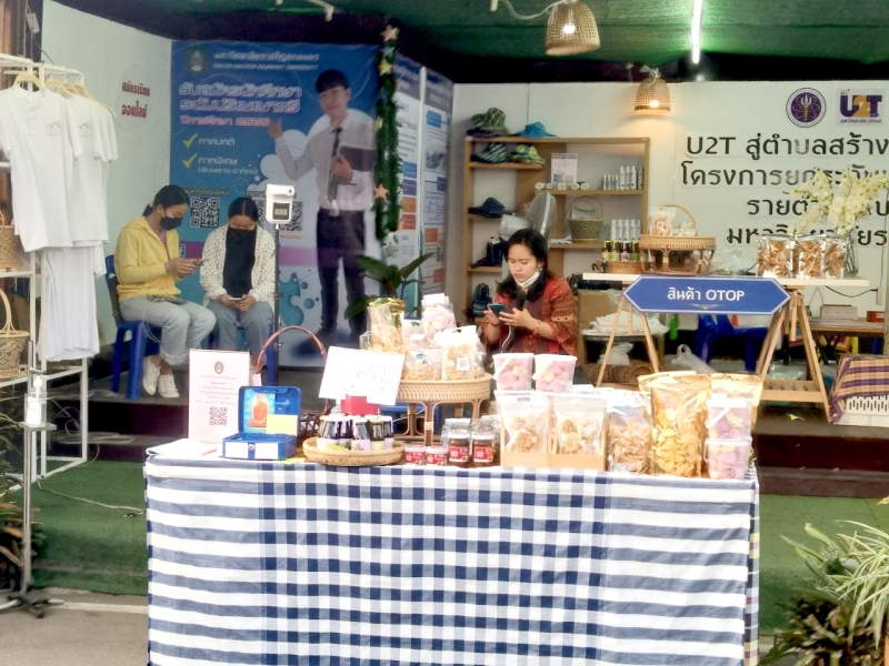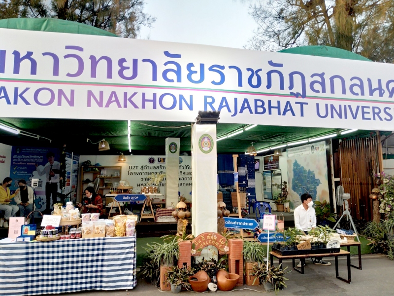 วันพฤหัสบดีที่ 3 มีนาคม 2565 เวลา 10.00 – 21.00 น. มหาวิทยาลัยราชภัฏสกลนคร โดย นายภานุวัฒิ ศักดิ์ดา นักวิเคราะห์นโยบายและแผนปฏิบัติการ นายสมศักดิ์ อามาตร์สมบัติ นักวิเคราะห์นโยบายและแผนปฏิบัติการและ นายวีระยุทธ์ คำปาน นักวิเคราะห์นโยบายและแผน ปฏิบัติการปฏิบัติหน้าที่ดูแลความเรียบร้อยของซุ้มนิทรรศการของมหาวิทยาลัยราชภัฏสกลนคร ในวันที่ 7 พร้อมต้อนรับผู้ที่เข้ามาเยี่ยมชมซุ้มนิทรรศการของมหาวิทยาลัยราชภัฏสกลนคร จำหน่ายผลิตภัณฑ์ของแต่ละตำบล และตอบข้อซักถามในประเด็นที่สนใจ การดำเนินการโครงการยกระดับเศรษฐกิจและสังคมรายตำบลแบบบูรณาการ U2T (1 ตำบล 1 มหาวิทยาลัย) ของมหาวิทยาลัยราชภัฏสกลนคร การดำเนินการของ อว. ส่วนหน้า จังหวัดสกลนคร และการดำเนินการภายใต้โครงการพัฒนาคุณภาพชีวิตและยกระดับรายได้ให้กับคนในชุมชนฐานราก (ศาสตร์พระราชา) ฯลฯ