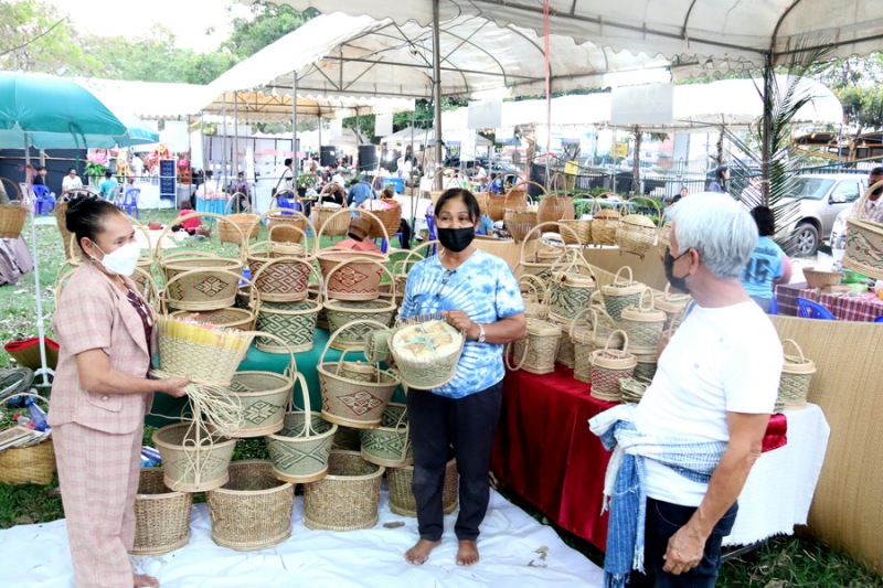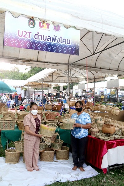 แสดงผลงานนิทรรศการภาพรวมโครงการยกระดับเศรษฐกิจและสังคมรายตำบลแบบบูรณาการ U2T ในงาน มหกรรมภูมิปัญญาพื้นบ้านมูนมังอีสาน ครั้งที่ 13 “ฮอยฮีตศรัทธา” (4 มีนาคม 2565)