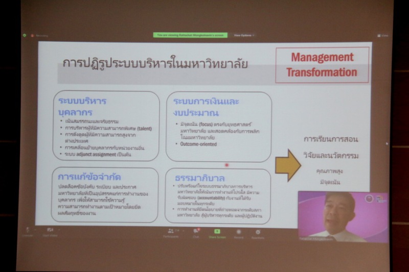 วันจันทร์ที่ 9 พฤษภาคม 2565 เวลา 08.30 – 12.00 น. มหาวิทยาลัยราชภัฏสกลนคร โดยกองนโยบายและแผน เชิญผู้บริหาร หัวหน้าส่วนราชการ บุคลากรสายวิชาการและสายสนับสนุนวิชาการ เข้าร่วม การสัมมนาบุคลากรเพื่อสร้างความเข้าใจในบทบาทใหม่ของมหาวิทยาลัย ผ่านสื่ออิเล็กทรอนิกส์ ด้วยโปรแกรม Zoom Cloud Meetings ณ ห้องประชุม 19213 ชั้น 2 อาคารเรียนรวม (อาคาร 19) มหาวิทยาลัยราชภัฏสกลนครในการนี้ได้รับเกียรติจากท่าน รองศาสตราจารย์ ดร. รัฐชาติ มงคลนาวิน อนุกรรมการด้านการพลิกโฉมมหาวิทยาลัย (Reinventing University) เป็นวิทยากรบรรยาย เรื่อง บทบาทใหม่ของมหาวิทยาลัยในการพลิกโฉมมหาวิทยาลัยตามกลุ่มยุทธศาสตร์ด้านการพัฒนาชุมชนเชิงพื้นที่ (Area-Based & Community) และท่าน ศาสตราจารย์ ดร.ทศวรรษ สีตะวัน รองอธิการบดีฝ่ายวิจัยและนวัตกรรม เป็นวิทยากรบรรยาย เรื่อง การพลิกโฉมมหาวิทยาลัยและบทบาทใหม่ของบุคลากรสู่การเป็นมหาลัย ตามกลุ่มยุทธศาสตร์ด้านการพัฒนาชุมชนเชิงพื้นที่ (Area-Based & Community) โดยมีวัตถุประสงค์เพื่อสร้างความรู้ ความเข้าใจแก่บุคลากร เกี่ยวกับบทบาทใหม่ของมหาวิทยาลัยในการพลิกโฉมมหาวิทยาลัย และบทบาทใหม่ของบุคลากรมหาวิทยาลัยราชภัฏสกลนคร เพื่อขับเคลื่อนการพลิกโฉมมหาวิทยาลัยตามกลุ่มยุทธศาสตร์ ด้านการพัฒนาชุมชนเชิงพื้นที่ (Area-Based & Community) ต่อไป