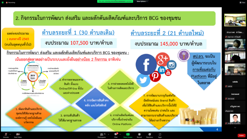 ประชุมเพื่อหารือและเตรียมความพร้อมดำเนินการโครงการขับเคลื่อนเศรษฐกิจและสังคมฐานรากหลังโควิดด้วยเศรษฐกิจ BCG (U2T for BCG) 10 มิถุนายน 2565
