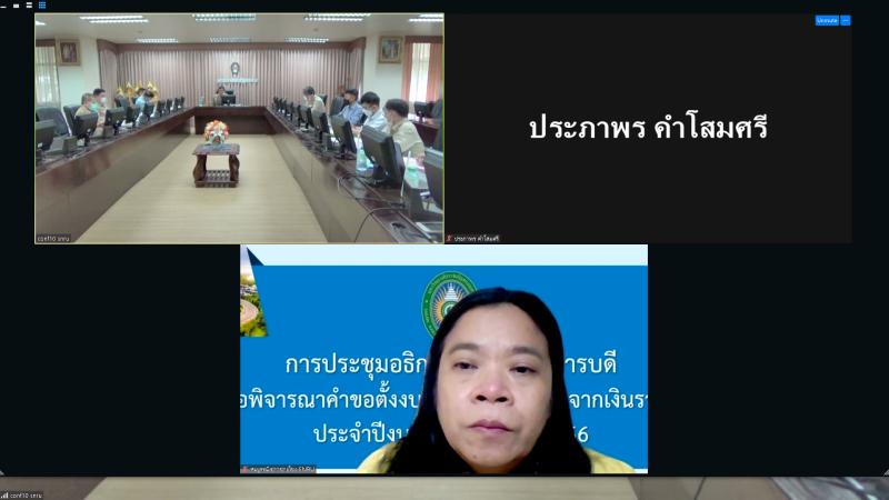 วันจันทร์ที่ 8 สิงหาคม พ.ศ. 2565 เวลา 14.00 น. กองนโยบายและแผนจัดการประชุมอธิการบดี รองอธิการบดี เพื่อพิจารณาคำขอตั้งงบประมาณรายจ่ายจากเงินรายได้ ประจำปีงบประมาณ พ.ศ. 2566 ขึ้น ผ่านสื่ออิเล็กทรอนิกส์ ด้วยโปรแกรม Zoom Cloud Meetings ณ ห้องประชุมสรัสจันทร ชั้น 2 อาคาร 10 มหาวิทยาลัยราชภัฏสกลนครโดยเชิญอธิการบดี รองอธิการบดี ผู้อำนวยการสำนักงานอธิการบดี ผู้อำนวยการกองนโยบายและแผน เพื่อพิจารณาคำขอตั้งงบประมาณรายจ่ายจากเงินรายได้ ประจำปีงบประมาณ พ.ศ. 2566 ของหน่วยงาน พิจารณาการจ้างอาจารย์พิเศษ ลูกจ้างชั่วคราวรายเดือนและรายวัน และพิจาณางบลงทุน ครุภัณฑ์ ที่ดินและสิ่งก่อสร้าง ฯลฯ ซึ่งเป็นไปตามปฏิทินการจัดทำงบประมาณรายจ่ายจากเงินรายได้ฯ