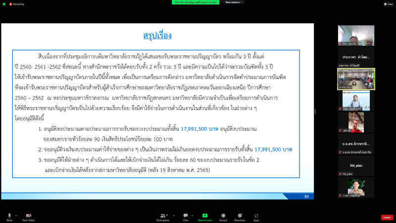ประชุมคณะกรรมการบริหารงบประมาณและการเงิน ครั้งที่ 4/2565 (13 สิงหาคม 2565)