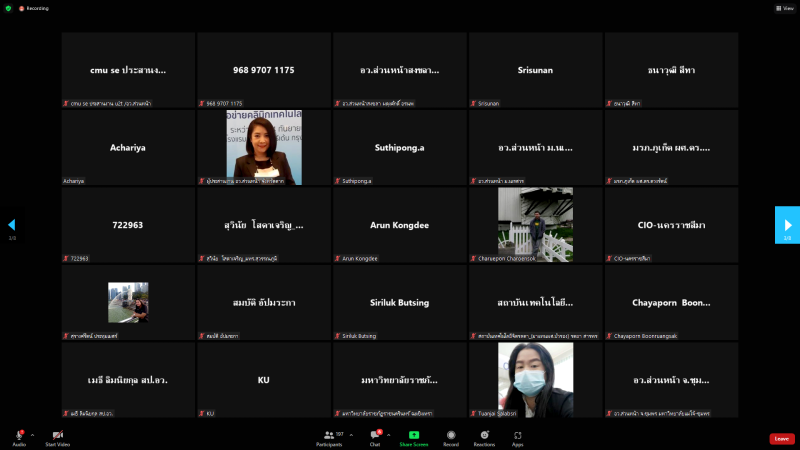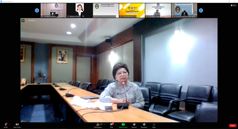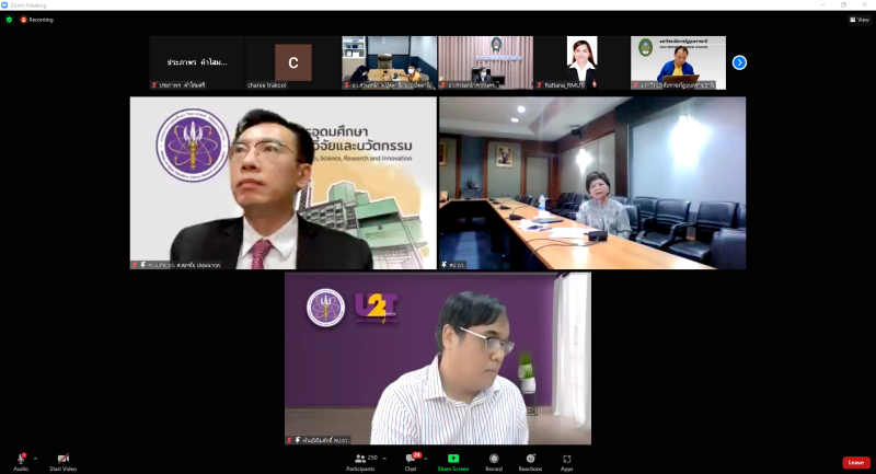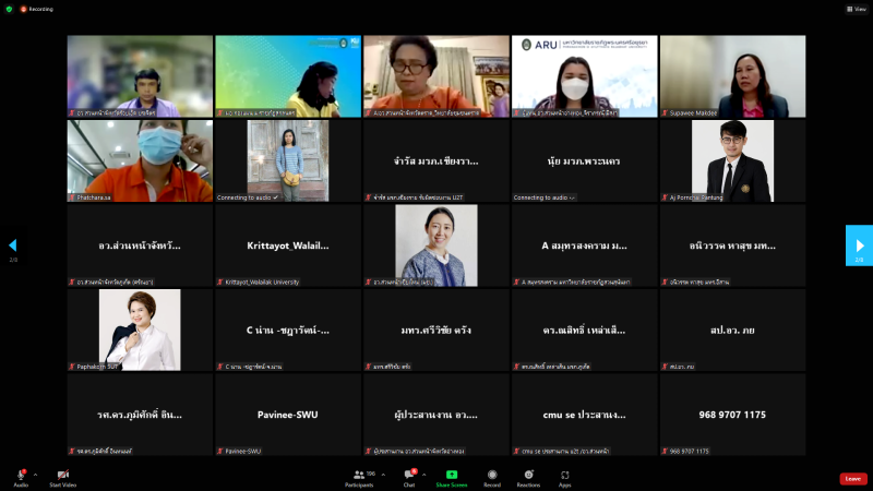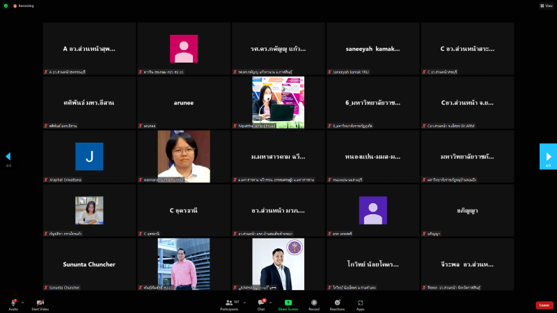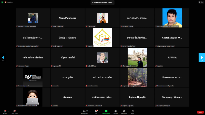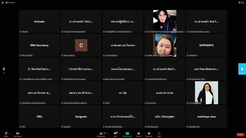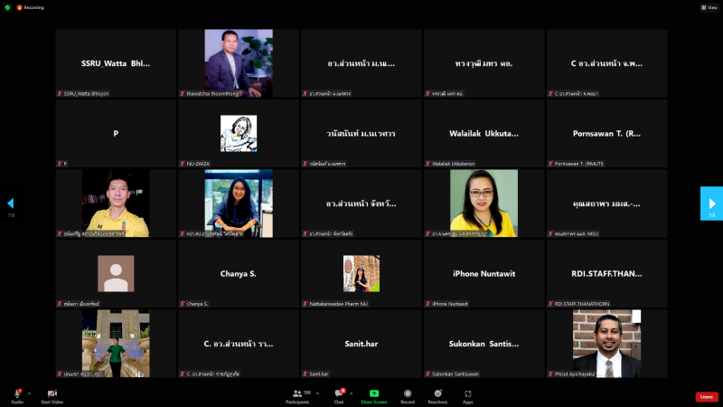 วันพฤหัสบดีที่ 25 สิงหาคม พ.ศ. 2565 เวลา 10.00 น. หน่วยปฏิบัติการส่วนหน้าของ อว. ส่วนหน้า จังหวัดสกลนคร โดย ผศ.ดร.สมบูรณ์ ชาวชายโขง รองอธิการบดีฝ่ายวางแผนและประกันคุณภาพ พร้อมบุคลากรที่เกี่ยวข้อง เข้าร่วมประชุมหารือการบันทึกข้อมูลชุมชน กับผู้ตรวจสอบข้อมูลรายจังหวัด (อว.ส่วนหน้า) และผู้ดูแล หน่วยงาน (CIO) ที่รับผิดชอบบันทึกข้อมูลชุมชน กองส่งเสริมและประสานเพื่อประโยชน์ทางวิทยาศาสตร์ วิจัย และนวัตกรรม (กปว.) สำนักงานปลัดกระทรวงการอุดมศึกษา วิทยาศาสตร์ วิจัย และนวัตกรรม (สป.อว.) ผ่านสื่ออิเล็กทรอนิกส์ ด้วยโปรแกรม Zoom Cloud Meetings ณ ห้องประชุมสรัสจันทร ชั้น 2 อาคาร 10 มหาวิทยาลัยราชภัฏสกลนคร