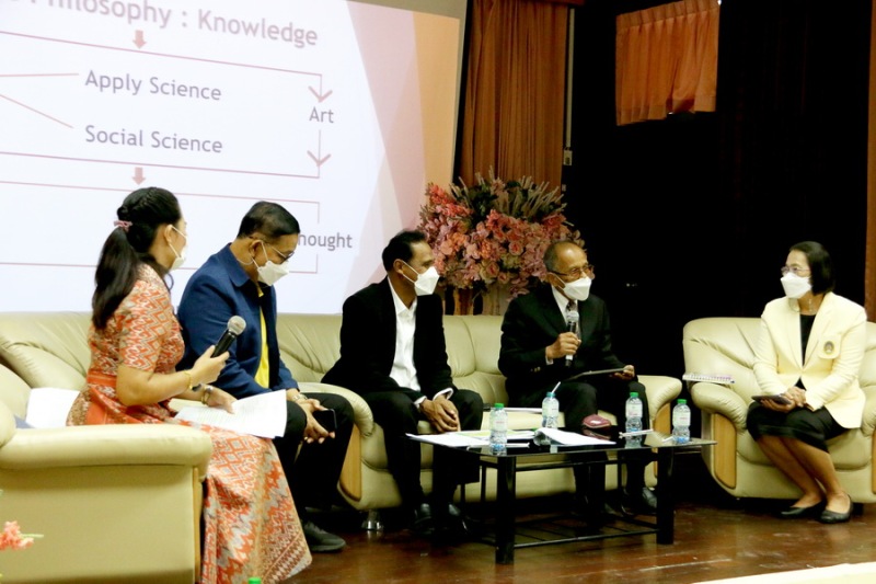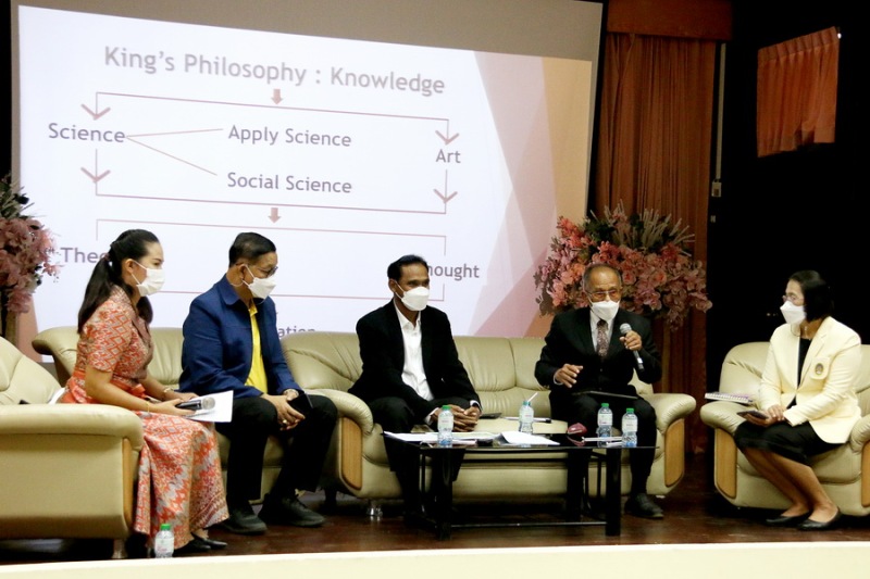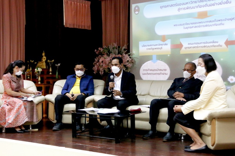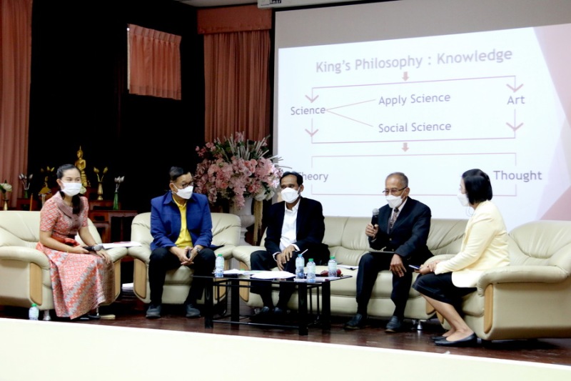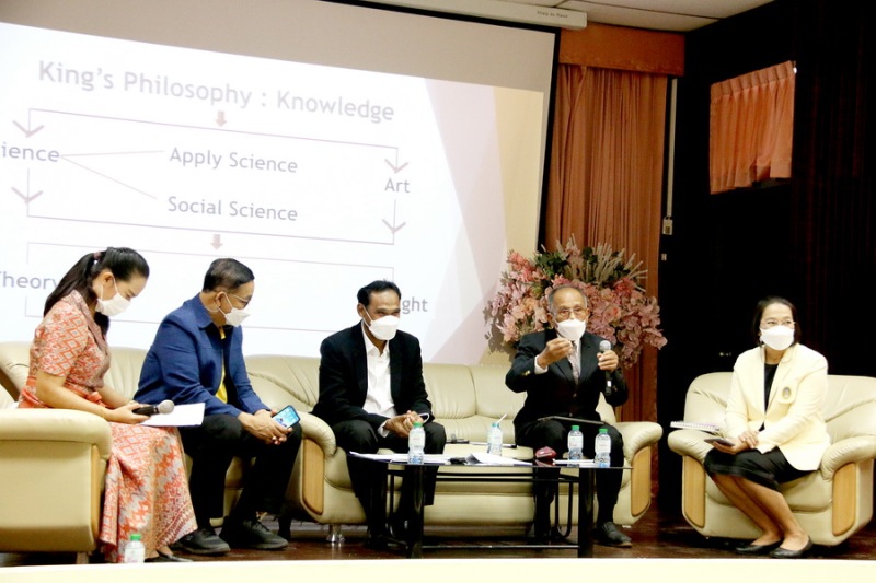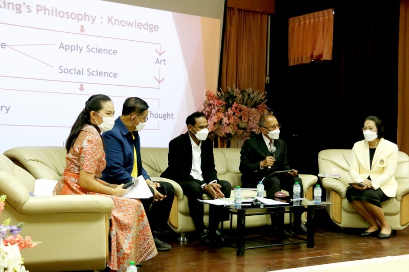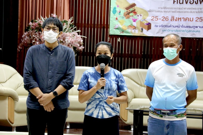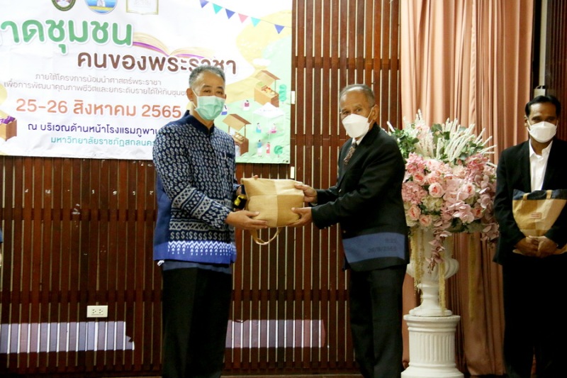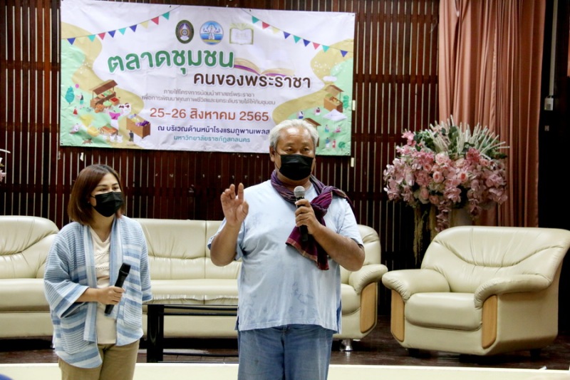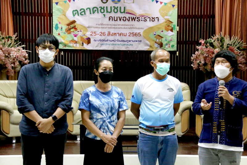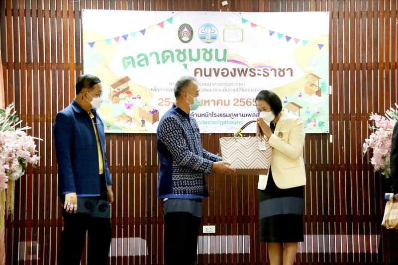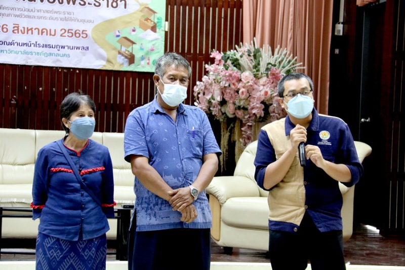 วันศุกร์ที่ 26 สิงหาคม พ.ศ. 2565 เวลา 08.30 – 21.00 น. มหาวิทยาลัยราชภัฏสกลนคร โดย กองนโยบายและแผน จัดประชุมสัมมนาการนิทรรศการและการแสดงสินค้าชุมชน ภายใต้โครงการน้อมนำศาสตร์พระราชา เพื่อการพัฒนาคุณภาพชีวิตและยกระดับรายได้ให้กับชุมชนฐานราก ประจำปีงบประมาณ พ.ศ. 2565 ขึ้น ณ ห้องประชุมดุสิตา โรงแรมภูพานเพลช มหาวิทยาลัยราชภัฏสกลนครโดยได้รับเกียรติจาก นายพิสิษฐ์ แร่ทอง รองผู้ว่าราชการจังหวัดสกลนคร เป็นประธานเปิดงานประชุมเสวนา การจัดนิทรรศการและการแสดงสินค้าชุมชนศาสตร์พระราชา เพื่อยกระดับคุณภาพงานศาสตร์พระราชา จากนั้นเสวนาแลกเปลี่ยนเรียนรู้ เรื่อง “ศาสตร์พระราชากับการพัฒนาท้องถิ่นเพื่อความยั่งยืน” โดยจาก มหาวิทยาลัยราชภัฏสกลนครและมหาวิทยาลัยราชภัฏเครือข่าย 1. ผศ.ชาคริต ชาญชิตปรีชา รักษาราชการแทนอธิการบดีมหาวิทยาลัยราชภัฏสกลนคร 2. ผศ.พจนารถ บัวเขียว รองอธิการบดีฝ่ายยุทธศาสตร์การพัฒนาอย่างยั่งยืน มหาวิทยาลัยราชภัฏเพชรบุรี 3. ผศ.ชูสิทธิ์ ชูชาติ ผู้อำนวยการศูนย์ศึกษาศาสตร์พระราชาเพื่อการพัฒนาท้องถิ่น มหาวิทยาลัยราชภัฏเชียงใหม่ 4. ดร.พิสมัย ประชานันท์ ผู้ช่วยอธิการบดี มหาวิทยาลัยราชภัฏบุรีรัมย์ ดำเนินรายการ โดย ดร.วินิธา พานิชย์ ผู้ช่วยอธิการบดีฝ่ายวางแผนและพันธกิจสัมพันธ์ ช่วงบ่ายเป็นเวทีเสวนา ผลการดำเนินงาน และแลกเปลี่ยนเรียนรู้ร่วมกัน ระหว่างหัวหน้าโครงการศาสตร์พระราชาฯ และตัวแทนชุมชนทั้ง 22 โครงการ ดำเนินรายการ โดย ผศ.ดร.สมบูรณ์ ชาวชายโขง รองอธิการบดีฝ่ายวางแผนและประกันคุณภาพ และ คุณณิชานันท์ กุตระแสง นักวิทยาศาสตร์