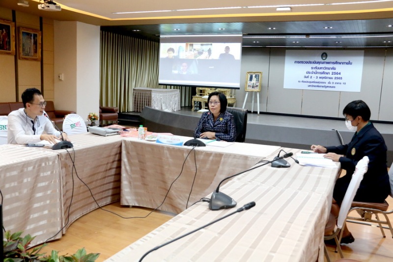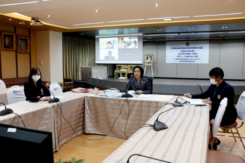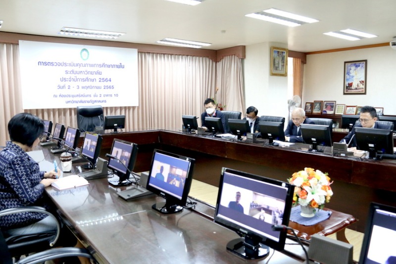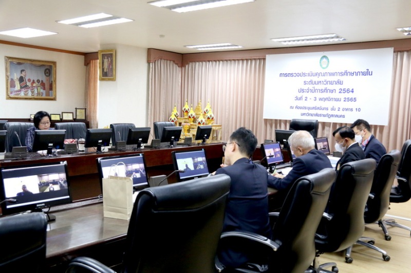 วันที่ 2 – 3 พฤศจิกายน พ.ศ. 2565 เวลา 08.30 – 16.30 น. มหาวิทยาลัยราชภัฏสกลนคร รับการตรวจประเมินประเมินคุณภาพการศึกษาภายใน ระดับมหาวิทยาลัย ประจำปีการศึกษา 2564 ผ่านสื่ออิเล็กทรอนิกส์ ด้วยโปรแกรม Zoom Cloud Meetings ณ ห้องประชุมสร้อยสุวรรณา ชั้น 3 อาคาร 10 มหาวิทยาลัยราชภัฏสกลนคร โดยมีคณะกรรมการประเมินคุณภาพการศึกษาภายใน ประจำปีการศึกษา 2564ประกอบด้วย