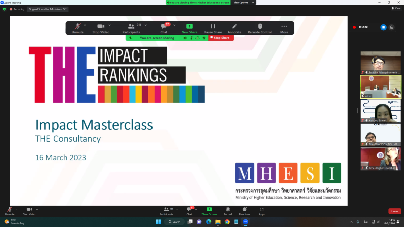 วันพฤหัสบดีที่ 16 มีนาคม พ.ศ. 2566 เวลา 14.00 – 16.30 น. กองนโยบายและแผน โดย ศาสตราจารย์ ดร.ทศวรรษ สีตะวัน รองอธิการบดี เชิญประธาน SDG 1 – 17 ผู้แทนและผู้ที่เกี่ยวข้อง เข้าร่วมประชุมประชุมสัมมนา Impact Masterclass 2024 ผ่านระบบประชุมทางไกล Zoom Cloud Meetings ตามหนังสือสำนักงานปลัดกระทรวงการอุดมศึกษา วิทยาศาสตร์ วิจัยและนวัตกรรม ที่ อว 0224.1/ว3999 เรื่อง ขอเชิญเข้าร่วมการประชุมสัมมนา Impact Masterclass 2024