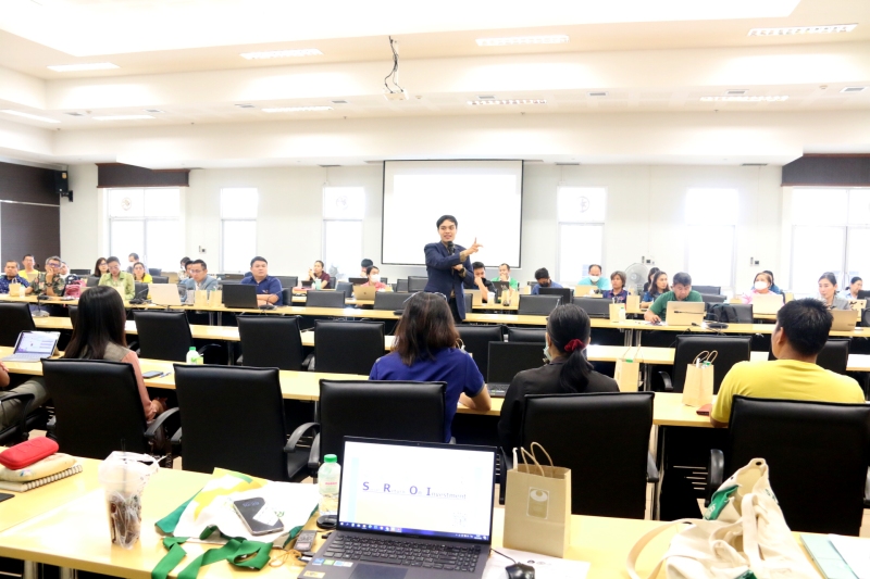โดยได้รับเกียรติจาก ผู้ช่วยศาสตราจารย์ชาคริต ชาญชิตปรีชา รักษาราชการแทนอธิการบดีมหาวิทยาลัยราชภัฏสกลนคร เป็นประธานเปิดการอบรม และกล่าวต้อนรับวิทยากร จากนั้นเป็นการบรรยาย แนวคิดและหลักการของการประเมินผลกระทบทางสังคมกับงาน (SIA) กับงานพัฒนา การใช้เครื่องมือและวิธีการประเมินผลลัพธ์และผลกระทบทางสังคม (SIA) การใช้เครื่องมือแบบบูรณาการศาสตร์ และการกำหนดตัวชี้วัดทางด้านสังคม การใช้เครื่องมือการประเมินผลตอบแทนทางสังคมจากการลงทุน (SROI) กับโครงการวิจัยและพัฒนา และ การแปลงคุณค่าทางสังคมเพื่อเตรียมคำนวนผลตอบแทนทางสังคมจากการลงทุน (SROI) ฯลฯ โดยวิทยากร คุณเศรษฐภูมิ บัวทอง นักวิจัยผู้เชี่ยวชาญวิทยาลัยพัฒนศาสตร์ ป๋วย อึ๊งภากรณ์ มหาวิทยาลัยธรรมศาสตร์ (ศูนย์รังสิต) จากนั้นแบ่งกลุ่มผู้เข้าร่วมอบรมฝึกปฏิบัติการโดยใช้โครงการต่างๆ เป็นกรณีศึกษา วิทยากรหลักโดย คุณเศรษฐภูมิ บัวทอง นักวิจัยผู้เชี่ยวชาญและวิทยากรกระบวนการ