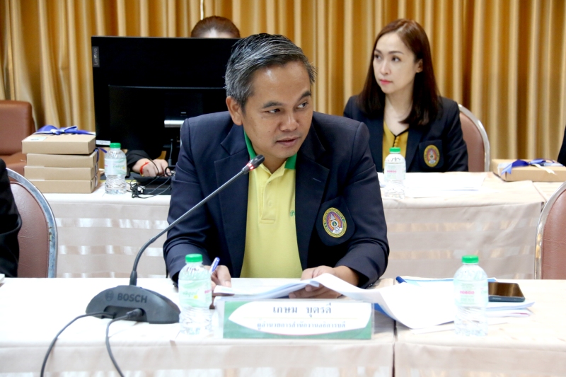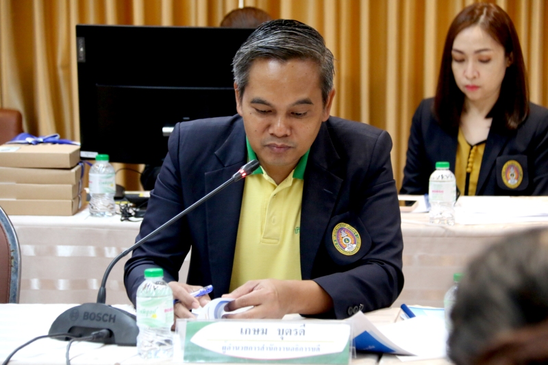 จากนั้นนำเสนอผลการประเมินทุกองค์ประกอบและผลการดำเนินงาน ของสำนักงานอธิการบดี ปีการศึกษา 2565 โดย นายเกษม บุตรดี ผู้อำนวยการสำนักงานอธิการบดี โดยมีคณะกรรมการประเมินคุณภาพการศึกษาภายใน ประจำปีการศึกษา 2565 ประกอบด้วย