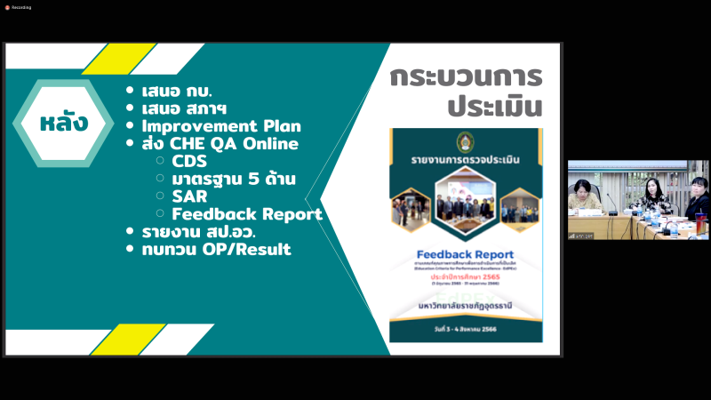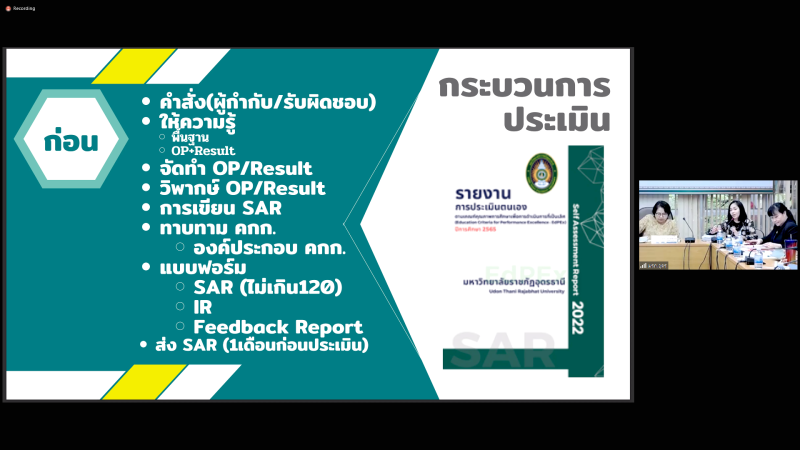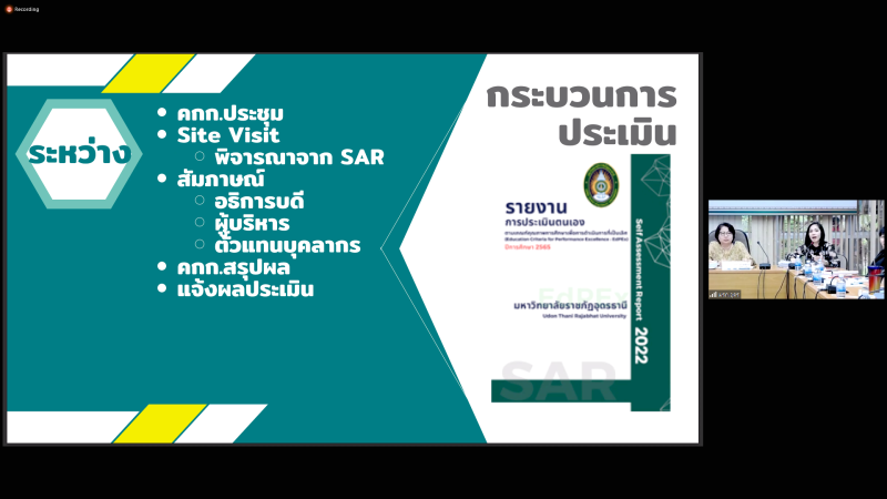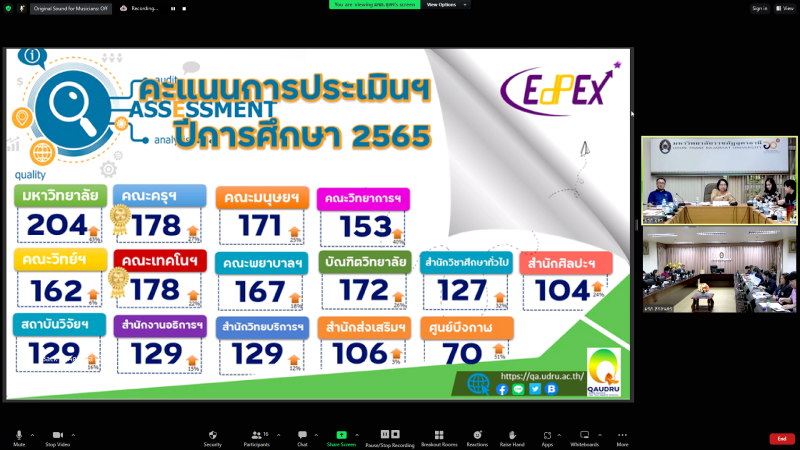 ศึกษาดูงาน เรื่อง การขับเคลื่อนการพัฒนาคุณภาพการศึกษาเพื่อการดำเนินการที่เป็นเลิศ (EdPEx) ของมหาวิทยาลัยราชภัฏอุดรธานี ผ่านสื่ออิเล็กทรอนิกส์ ระบบ Zoom Cloud Meeting ณ ห้องประชุมสรัสจันทร ชั้น 2 อาคาร 10 มหาวิทยาลัยราชภัฎสกลนคร โดยได้รับเกียรติจาก ผู้ช่วยศาสตราจารย์ ดร.ธีระยุทธ์ เพ็งชัย รองอธิการบดี บรรยาย การขับเคลื่อนการพัฒนาคุณภาพการศึกษาเพื่อการดำเนินการที่เป็นเลิศ (EdPEx) ของมหาวิทยาลัยราชภัฏอุดรธานี จากนั้นเป็นบรรยายการขับเคลื่อนการดำเนินฯ พร้อมแลกเปลี่ยนการดำเนินการ (EdPEx) ระหว่าง สานักงานอธิการบดี มหาวิทยาลัยราชภัฏสกลนคร กับ มหาวิทยาลัยราชภัฏอุดรธานี โดย นางฐานิดา แก้วปาน นักวิชาการศึกษา กองนโยบายและแผน มหาวิทยาลัยราชภัฏอุดรธานี โดยการศึกษาดูงานครั้งนี้มีวัตถุประสงค์เพื่อให้บุคลากรสามารถนำความรู้ที่ได้รับจากการศึกษาดูงานมาใช้เป็นแนวทางดำเนินการและขับเคลื่อนสำนักงานอธิการบดีไปสู่การพัฒนาคุณภาพการศึกษาเพื่อการดำเนินการที่เป็นเลิศ (EdPEx)