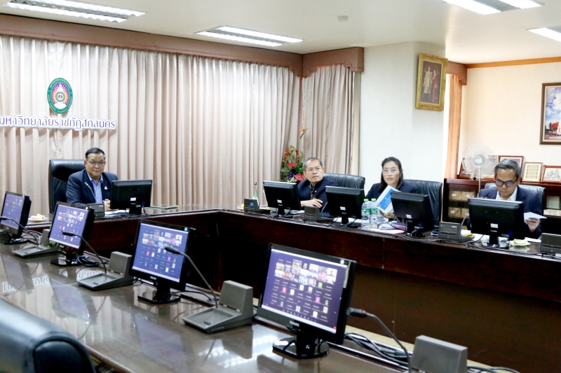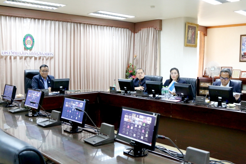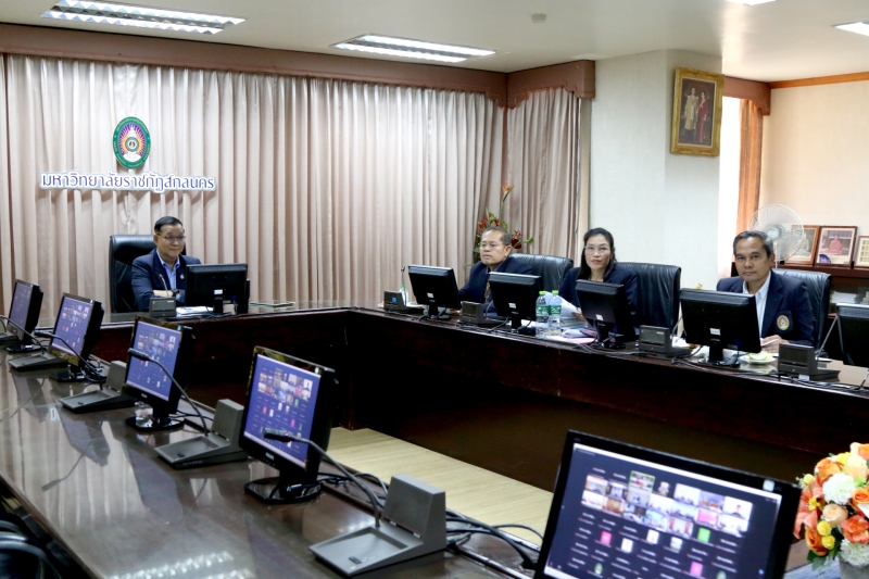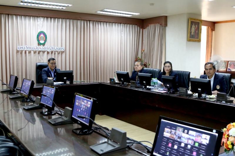 มหาวิทยาลัยราชภัฏสกลนคร โดย ผู้ช่วยศาสตราจารย์ชาคริต ชาญชิตปรีชา รักษาราชการแทนอธิการบดีมหาวิทยาลัยราชภัฏสกลนคร พร้อมด้วย 1. ศาสตราจารย์ ดร.ทศวรรษ สีตะวัน รองอธิการบดี 2. นายเกษม บุตรดี ผู้อำนวยการสำนักงานอธิการบดี 3. นางอมรรัตน์ ตุ่นกลิ่น รักษาการในตำแหน่งผู้อำนวยการกองนโยบายและแผน