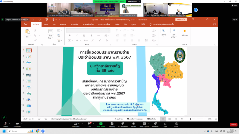 เข้าร่วมประชุมชี้แจงงบประมาณ ประจำปีงบประมาณ พ.ศ. 2567 ต่อคณะกรรมาธิการวิสามัญพิจารณาร่างพระราชบัญญัติงบประมาณรายจ่ายประจำปีงบประมาณ พ.ศ. 2567 สภาผู้แทนราษฎร ในวันอังคารที่ 23 มกราคม พ.ศ. 2567 เวลา 14.00 – 17.00 น. ผ่านสื่ออิเล็กทรอนิกส์ ด้วยโปรแกรม Zoom Cloud Meetings ณ ห้องประชุมสรัสจันทร ชั้น 2 อาคาร 10 มหาวิทยาลัยราชภัฏสกลนคร