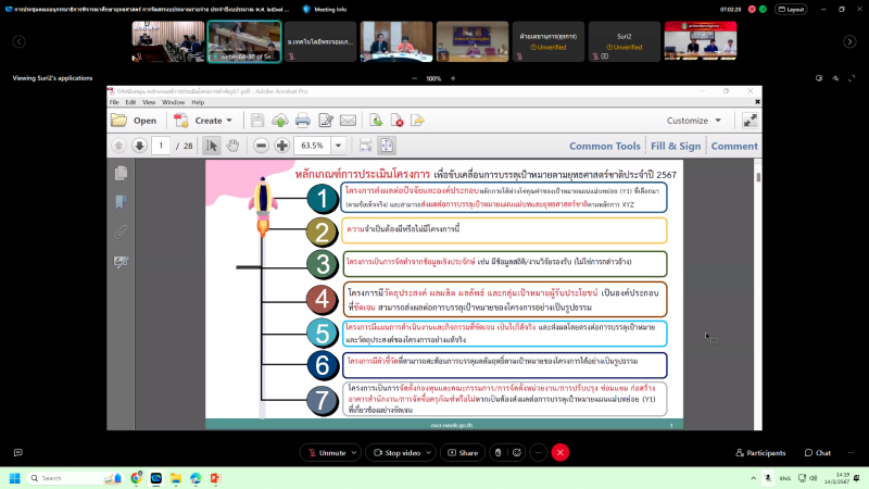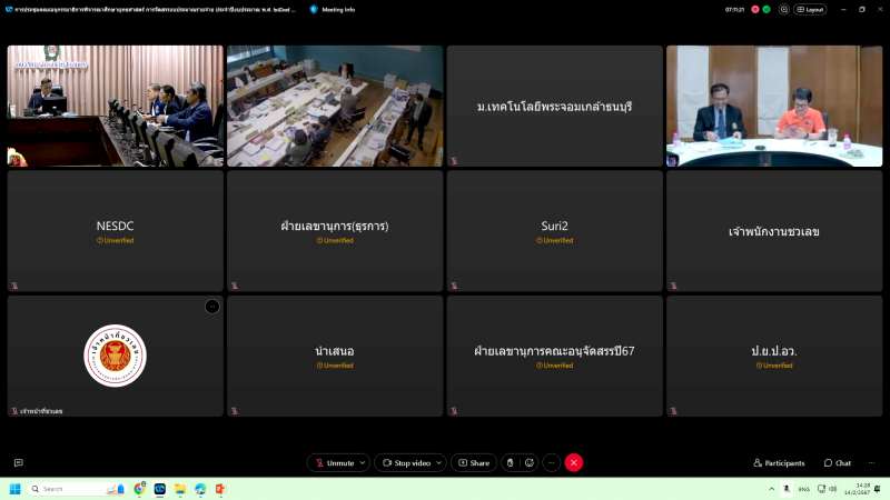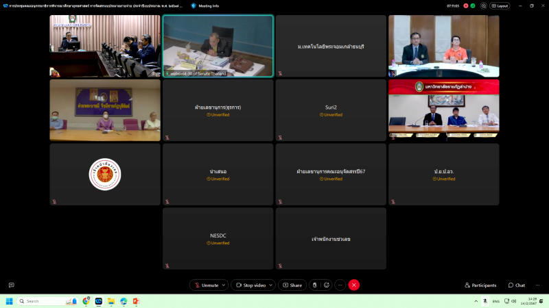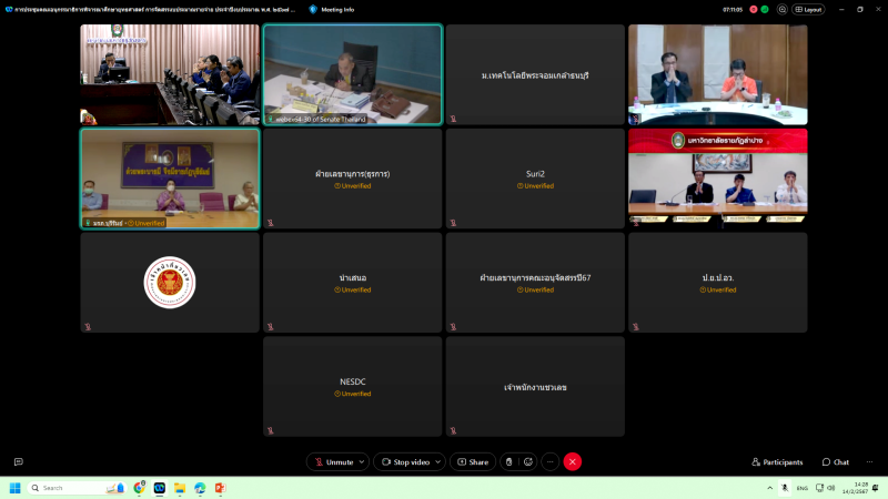 เข้าร่วมประชุมชี้แจงงบประมาณ ประจำปีงบประมาณ พ.ศ. 2567 ต่อคณะอนุกรรมาธิการพิจารณาศึกษายุทธศาสตร์การจัดสรรงบประมาณรายจ่าย ประจำปีงบประมาณ พ.ศ. 2567 ในคณะกรรมาธิการวิสามัญพิจารณาศึกษาร่างพระราชบัญญัติงบประมาณรายจ่าย ประจำปีงบประมาณ พ.ศ. 2567 วุฒิสภา ในวันพุธที่ 14 กุมภาพันธ์ พ.ศ. 2567 เวลา 13.00 – 15.00 น. ผ่านสื่ออิเล็กทรอนิกส์ ด้วยโปรแกรม Zoom Cloud Meetings ณ ห้องประชุมสรัสจันทร ชั้น 2 อาคาร 10 มหาวิทยาลัยราชภัฏสกลนคร