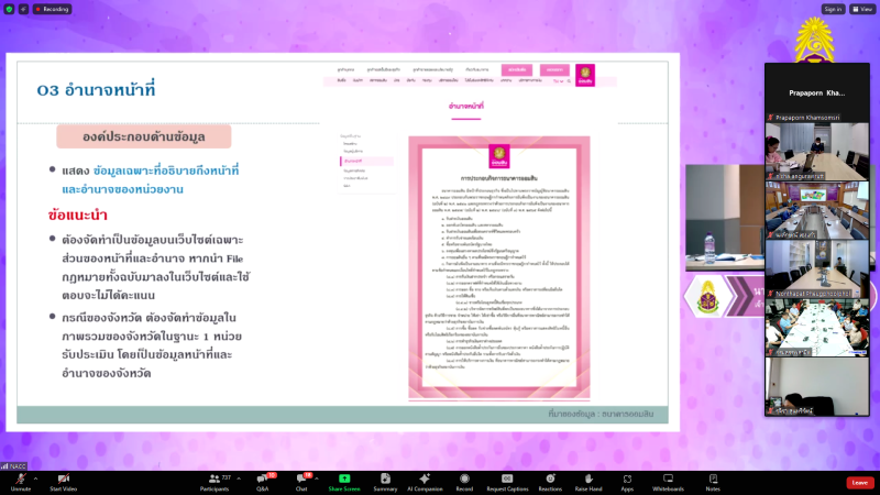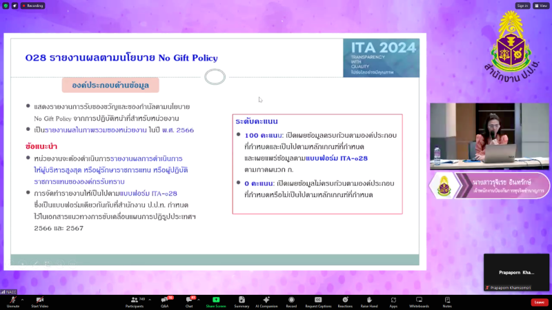 กิจกรรมการยกระดับคุณธรรมและความโปร่งใสในการดำเนินงานของหน่วยงานภาครัฐ (ผ่าน Zoom) 1 มีนาคม 2567