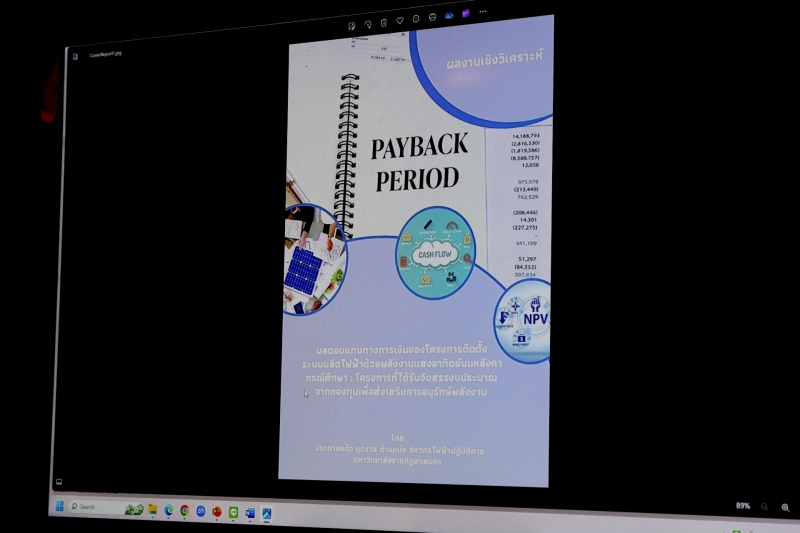 1. นายประกายแก้ว บุตราช วิศวกรไฟฟ้าปฏิบัติการ บรรยาย คู่มือเรื่อง “การออกแบบระบบผลิตไฟฟ้าด้วยพลังงานแสงอาทิตย์บนหลังคา” และผลงานเชิงวิเคราะห์เรื่อง “ผลตอบแทนทางการเงินของโครงการติดตั้งระบบผลิตไฟฟ้าด้วยพลังงานแสงอาทิตย์บนหลังคา”