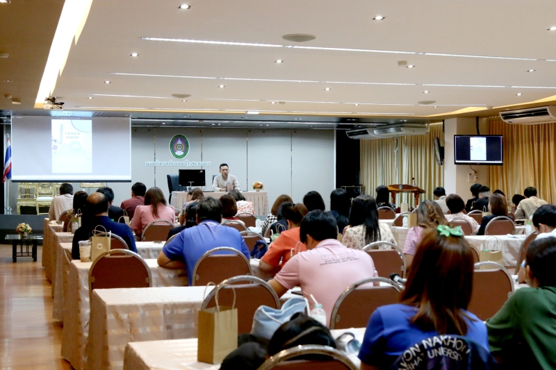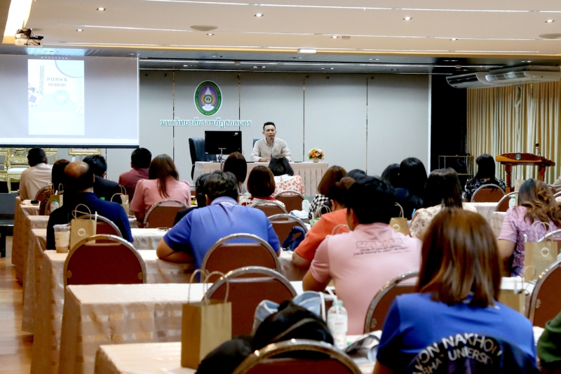 2. นายไพวัลย์ สมปอง บุคลากรปฏิบัติการ บรรยาย คู่มือเรื่อง “การดำเนินการขอรับทุนสนับสนุนการศึกษาเพื่อพัฒนาบุคลากรกองทุนพัฒนาบุคลากร มหาวิทยาลัยราชภัฎสกลนคร และ