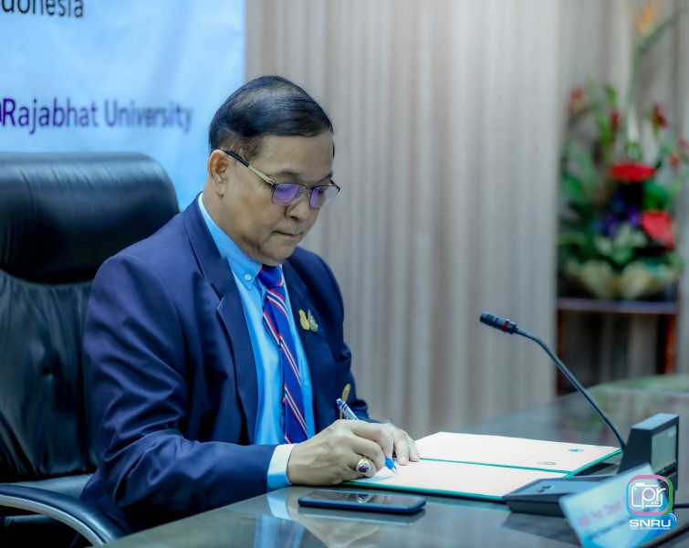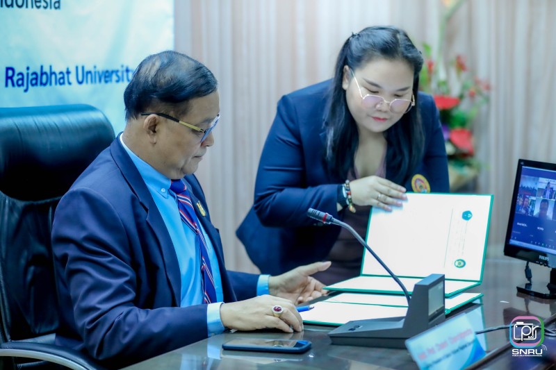 ผ่านสื่ออิเล็กทรอนิกส์ด้วยระบบ Zoom Cloud Meeting Meeting ณ ห้องประชุมสรัสจันทร ชั้น 2 อาคาร 10 มหาวิทยาลัยราชภัฏสกลนคร โดยบันทึกข้อตกลงความร่วมมือ เพื่อความร่วมมือด้านงานวิชาการ แลกเปลี่ยนบุคลากรและนักศึกษาร่วมกัน และสร้างความร่วมมือด้านเป้าหมายการพัฒนาที่ยั่งยืน (SDGs)