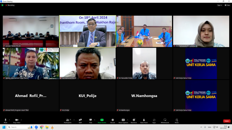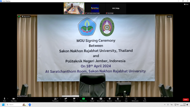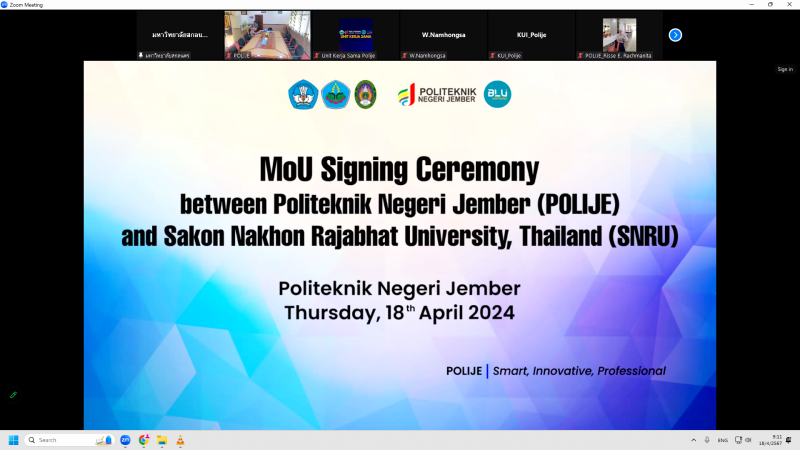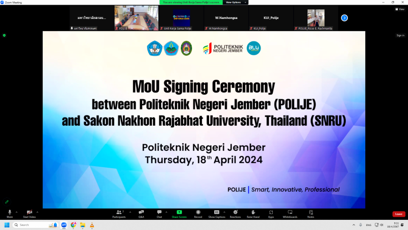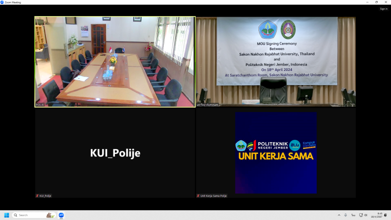พิธีลงนามบันทึกข้อตกลงความร่วมมือระหว่าง มหาวิทยาลัยราชภัฏสกลนคร กับ POLITEKNIK NEGERI JEMBER (POLJE) ประเทศอินโดนีเซีย (18 เมษายน 2567)