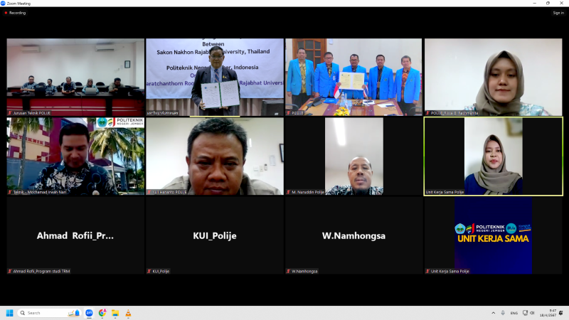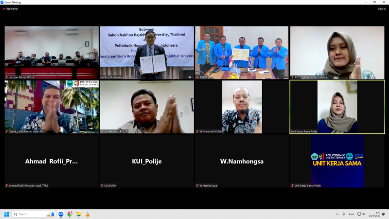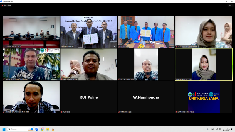 วันพฤหัสบดีที่ 18 เมษายน พ.ศ. 2567 เวลา 09.30 – 10.30 น. มหาวิทยาลัยราชภัฏสกลนคร โดย ผู้ช่วยศาสตราจารย์ชาคริต ชาญชิตปรีชา รักษาราชการแทนอธิการบดีมหาวิทยาลัยราชภัฏสกลนคร พร้อมผู้บริหาร ร่วมพิธีลงนามบันทึกข้อตกลงความร่วมมือระหว่าง มหาวิทยาลัยราชภัฏสกลนคร กับ POLITEKNIK NEGERI JEMBER (POLJE) ประเทศอินโดนีเซีย