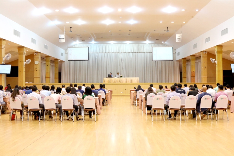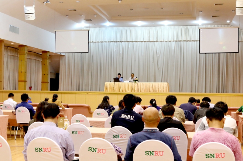 จากนั้นชี้แจงข้อมูลการจัดทำกรอบอัตรากำลังสายวิชาการของมหาวิทยาลัยราชภัฏสกลนคร พ.ศ. 2567 – 2570 โดย นายเกษม บุตรดี ผู้อำนวยการสำนักงานอธิการบดี พร้อมด้วย นายภานุวัฒิ ศักดิ์ดา นักวิเคราะห์นโยบายและแผนปฏิบัติการ วัตถุประสงค์เพื่อให้ หัวหน้าส่วนราชการ ประธานหลักสูตร/ประธานสาขา/ผู้อำนวยการโรงเรียนวิถีธรรม ฯลฯ ร่วมทบทวนข้อมูลการจัดทำกรอบอัตรากำลังสายวิชาการของมหาวิทยาลัยราชภัฏสกลนคร พ.ศ. 2567 – 2570 เพื่อคณะทำงานกรอบอัตรากำลังสายวิชาการฯ จะได้จัดทำข้อมูลกรอบอัตรากำลังสายวิชาการของมหาวิทยาลัยราชภัฏสกลนคร พ.ศ. 2567 – 2570 ให้เป็นไปด้วยความเรียบร้อยและมีประสิทธิภาพสูงสุด