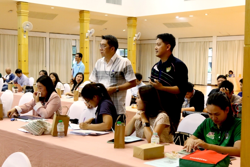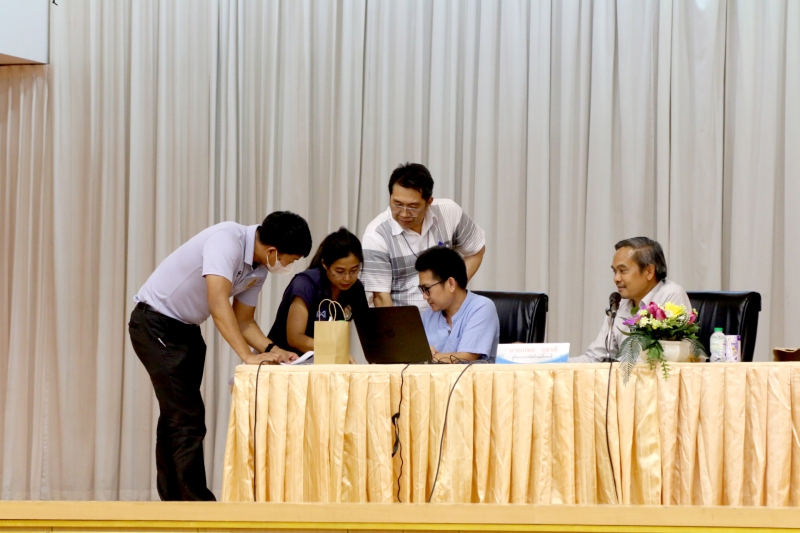 จากนั้นชี้แจงข้อมูลการจัดทำกรอบอัตรากำลังสายวิชาการของมหาวิทยาลัยราชภัฏสกลนคร พ.ศ. 2567 – 2570 โดย นายเกษม บุตรดี ผู้อำนวยการสำนักงานอธิการบดี พร้อมด้วย นายภานุวัฒิ ศักดิ์ดา นักวิเคราะห์นโยบายและแผนปฏิบัติการ วัตถุประสงค์เพื่อให้ หัวหน้าส่วนราชการ ประธานหลักสูตร/ประธานสาขา/ผู้อำนวยการโรงเรียนวิถีธรรม ฯลฯ ร่วมทบทวนข้อมูลการจัดทำกรอบอัตรากำลังสายวิชาการของมหาวิทยาลัยราชภัฏสกลนคร พ.ศ. 2567 – 2570 เพื่อคณะทำงานกรอบอัตรากำลังสายวิชาการฯ จะได้จัดทำข้อมูลกรอบอัตรากำลังสายวิชาการของมหาวิทยาลัยราชภัฏสกลนคร พ.ศ. 2567 – 2570 ให้เป็นไปด้วยความเรียบร้อยและมีประสิทธิภาพสูงสุด