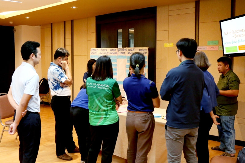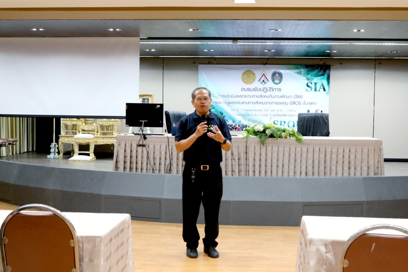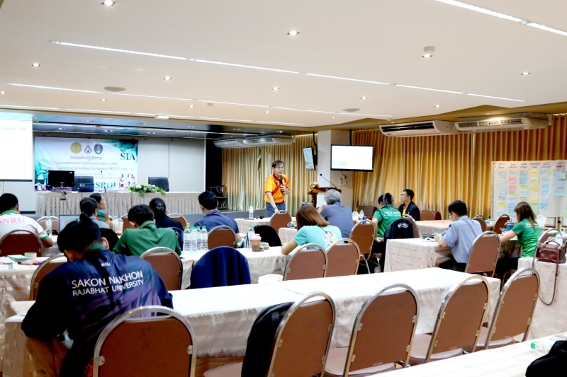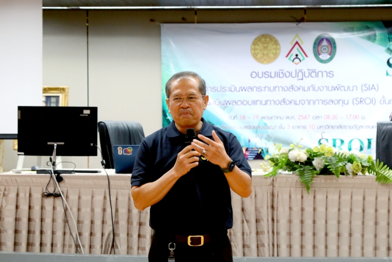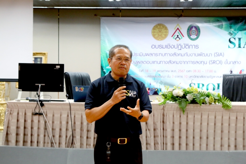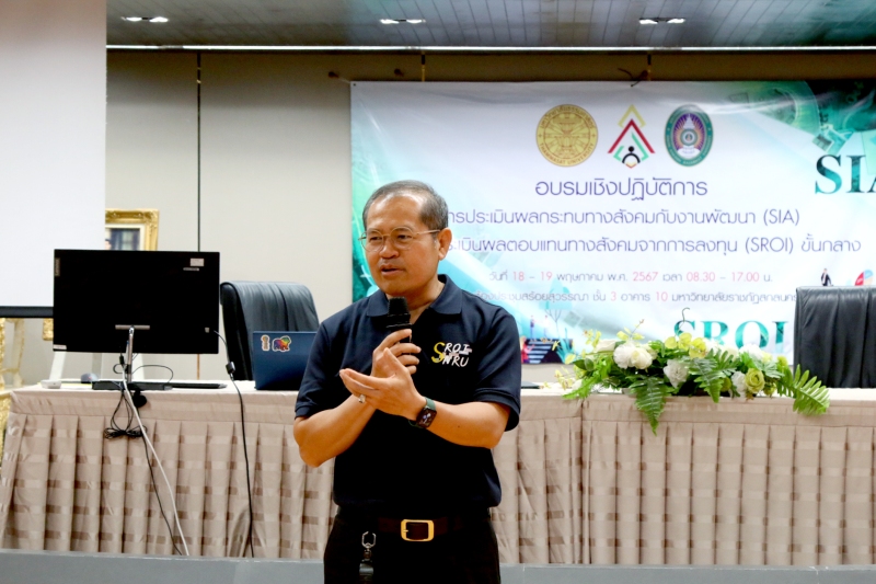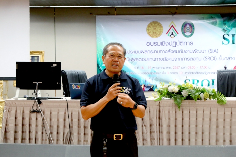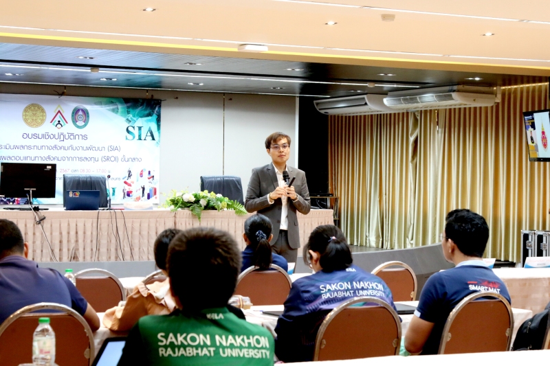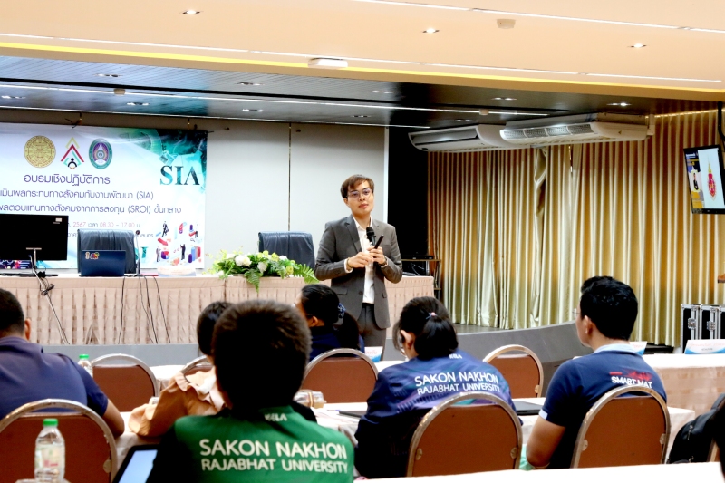 ให้กับบุคลากรมหาวิทยาลัยราชภัฏสกลนคร โดยหลักสูตรอบรมเริ่มในวันเสาร์ที่ 18 พฤษภาคม พ.ศ. 2567 เวลา 08.30 น. ผู้ช่วยศาสตราจารย์ชาคริต ชาญชิตปรีชา รักษาราชการแทนอธิการบดีมหาวิทยาลัยราชภัฏสกลนคร เป็นประธานเปิดการอบรม กล่าวรายงาน โดย ศาสตราจารย์ ดร.ทศวรรษ สีตะวัน รองอธิการบดี ด้านวางแผน ยุทธศาสตร์ นวัตกรรม และพันธกิจสากล วิทยากรให้ความรู้ การประเมินผลกระทบทางสังคม (SIA) และการประเมินผลตอบแทนทางสังคมจากการลงทุน (SROI) โดย นายเศรษฐภูมิ บัวทอง ผู้อำนวยการศูนย์วิจัยและพัฒนาเครื่องมือด้านการประเมินผลตอบแทนทางสังคม (SROI TU) พร้อมทีมวิทยากร ได้แก่ 1. นางสาวอุมัยย๊ะ ลูดิง 2. นายเสกสรรค์ ว่องวัฒนาศิลป์ 3. นางสาวอาซีม๊ะ ดามาลอ และ 4. นางสาวเนตรนรินทร์ ตรังคตระการ การจัดการอบรมเชิงปฏิบัติการครั้งนี้ มีวัตถุประสงค์เพื่อพัฒนาบุคลากรให้มีองค์ความรู้ เกี่ยวกับติดตามและประเมินผลความสำเร็จของโครงการ และเพื่อติดตามประเมินผลความสำเร็จของโครงการยุทธศาสตร์มหาวิทยาลัยราชภัฏเพื่อการพัฒนาท้องถิ่น และโครงการอื่นที่คณะ หน่วยงาน