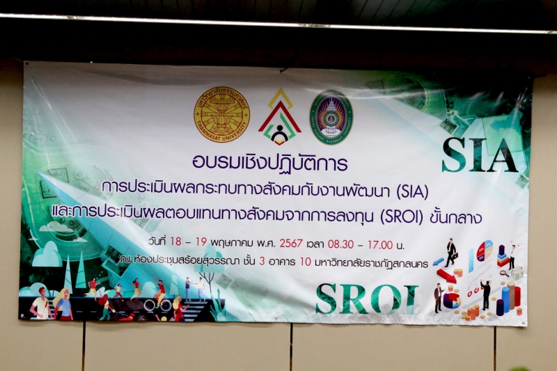 มหาวิทยาลัยราชภัฏสกลนคร ร่วมกับศูนย์วิจัยและพัฒนาเครื่องมือด้านการประเมินผลตอบแทนทางสังคม (SROI TU) จัดอบรมเชิงปฏิบัติการ หลักสูตร “การประเมินผลกระทบทางสังคม (SIA) และการประเมินผลตอบแทนทางสังคมจากการลงทุน (SROI) ขั้นกลาง” ระหว่างวันที่ 18 – 19 พฤษภาคม พ.ศ. 2567 เวลา 08.30 – 17.00 น. ณ ห้องประชุมสร้อยสุวรรณา ชั้น 3 อาคาร 10 มหาวิทยาลัยราชภัฏสกลนคร