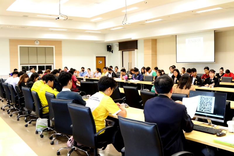 โดย ศาสตราจารย์ ดร.ทศวรรษ สีตะวัน รองอธิการบดีด้านวางแผน ยุทธศาสตร์ นวัตกรรมและพันธกิจสากล พร้อมด้วย นางอมรรัตน์ ตุ่นกลิ่น รักษาการในตำแหน่งผู้อำนวยการกองนโยบายและแผน ให้การต้อนรับพร้อมสังเกตการณ์ กลุ่มเป้าหมายจัดเก็บข้อมูลแบบวัดการรับรู้ของผู้มีส่วนได้ส่วนเสียภายนอก ครั้งนี้จำนวน 50 คน ได้แก่ นักศึกษาที่เป็นคัดเลือกตัวแทนจากองค์การบริหารนักศึกษา สภานักศึกษา สโมสรนักศึกษา คู่สัญญา จัดซื้อจัดจ้าง ร้านค้าเช่าพื้นที่มหาวิทยาลัย ฯลฯ