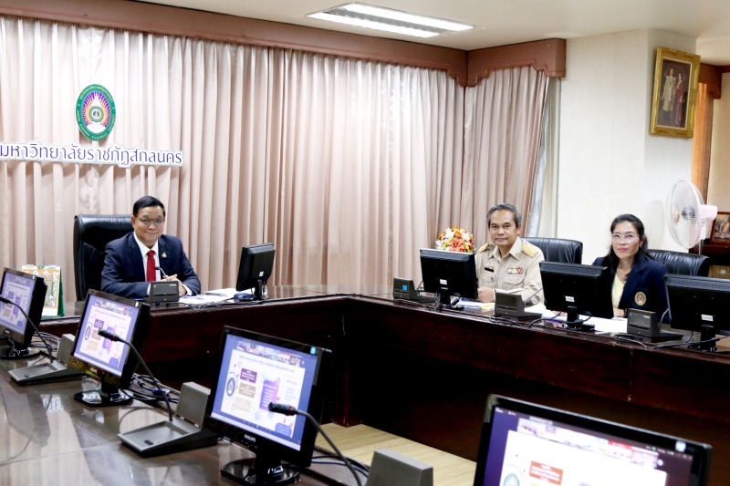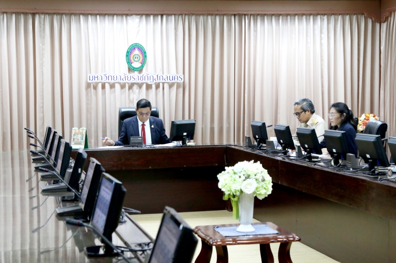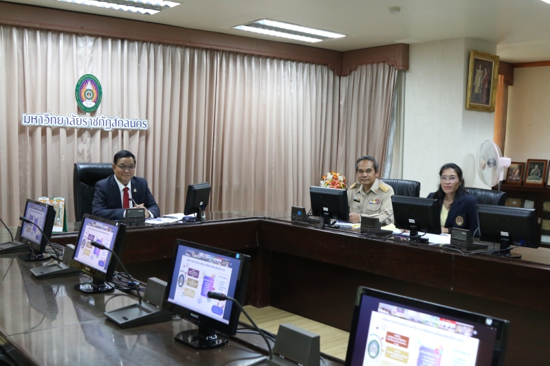 มหาวิทยาลัยราชภัฏสกลนคร โดย ผู้ช่วยศาสตราจารย์ชาคริต ชาญชิตปรีชา รักษาราชการแทนอธิการบดีมหาวิทยาลัยราชภัฏสกลนคร พร้อมด้วย 1. นายเกษม บุตรดี ผู้อำนวยการสำนักงานอธิการบดี 2. นางอมรรัตน์ ตุ่นกลิ่น รักษาการในตำแหน่งผู้อำนวยการกองนโยบายและแผน เข้าร่วมประชุมชี้แจงงบประมาณ ประจำปีงบประมาณ พ.ศ. 2568 ต่อคณะกรรมาธิการวิสามัญพิจารณาร่างพระราชบัญญัติงบประมาณรายจ่ายประจำปีงบประมาณ พ.ศ. 2568 สภาผู้แทนราษฎร ในวันอังคารที่ 9 กรกฎาคม พ.ศ. 2567 เวลา 14.00 – 17.00 น. ผ่านสื่ออิเล็กทรอนิกส์ ด้วยโปรแกรม Zoom Cloud Meetings ณ ห้องประชุมสรัสจันทร ชั้น 2 อาคาร 10 มหาวิทยาลัยราชภัฏสกลนคร