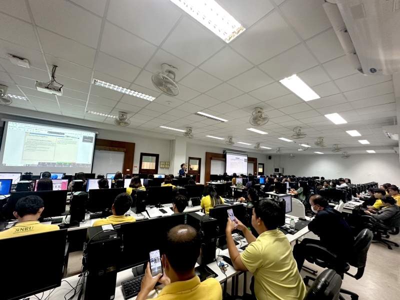 ณ ห้องปฏิบัติการคอมพิวเตอร์ 1123 – 1124 ชั้น 2 อาคารศูนย์ภาษาและคอมพิวเตอร์ (อาคาร 11) มหาวิทยาลัยราชภัฏสกลนคร จัดโดย งานบริหารบุคคลและนิติการ สำนักงานอธิการบดี มหาวิทยาลัยราชภัฏสกลนคร