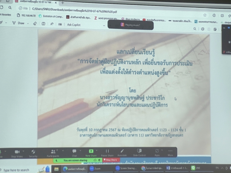ประชุมหารือแนวทางการแลกเปลี่ยนเรียนรู้ในการจัดทำคู่มือปฏิบัติงานหลัก (10 กรกฎาคม 2567)