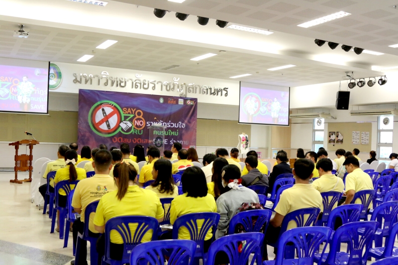 เนื่องในโอกาสพระราชพิธีมงคลเฉลิมพระชนมพรรษา 6 รอบ ภายใต้โครงการ “สร้าง เสริม สุข” มหาวิทยาลัยราชภัฏไปสู่สังคมสุขภาวะ ณ ห้องประชุมกิจกรรมสร้างสรรค์ ชั้น 3 อาคาร 20 มหาวิทยาลัยราชภัฏสกลนคร และร่วมแสดงเจตจำนง “ทำดีด้วยหัวใจชาวราชภัฏร่วมต่อต้านภัยบุหรี่ไฟฟ้าในรั้วมหาวิทยาลัย” ร่วมกับภาคีเครือข่ายมหาวิทยาลัยแห่งความสุข ทั้ง 38 แห่ง ฯลฯ