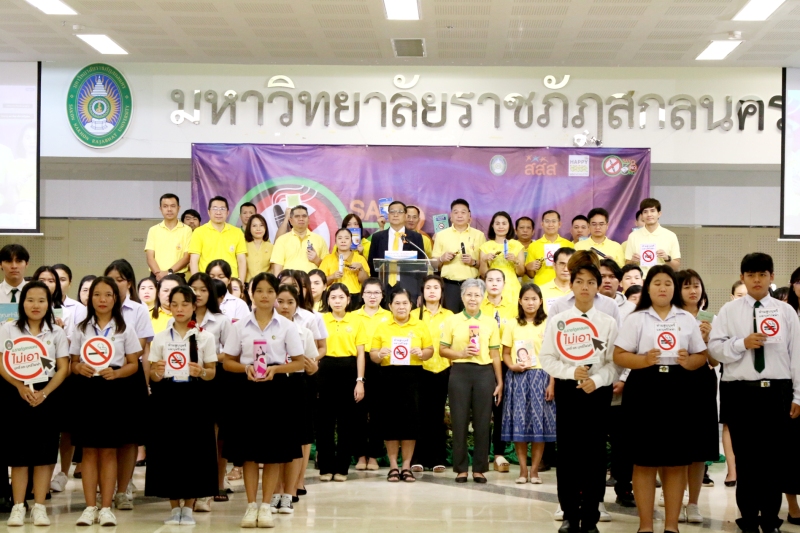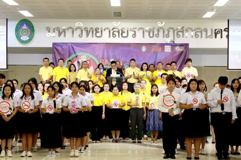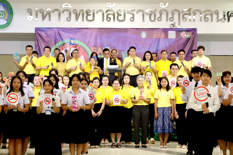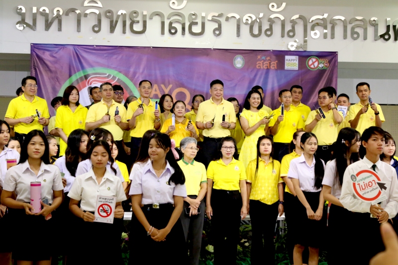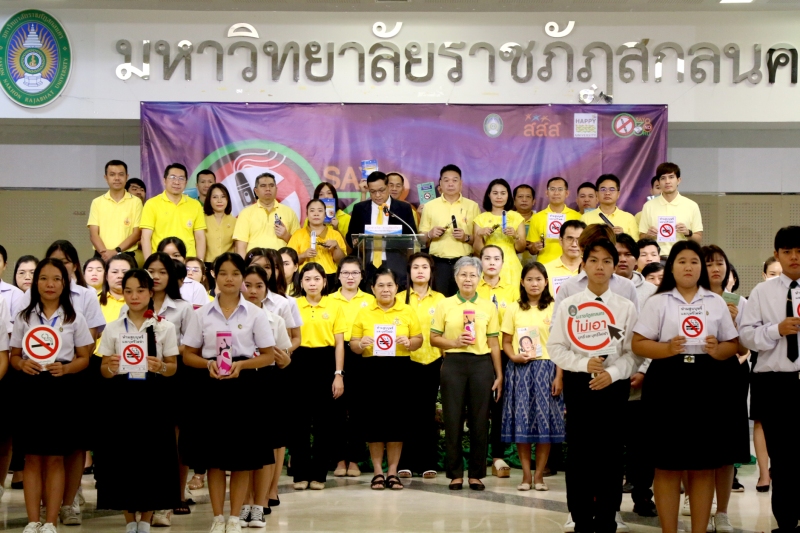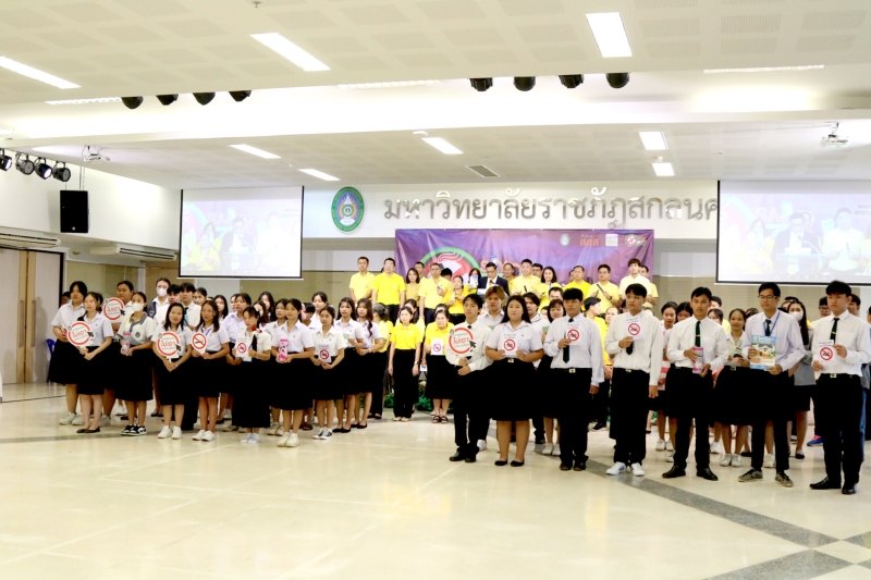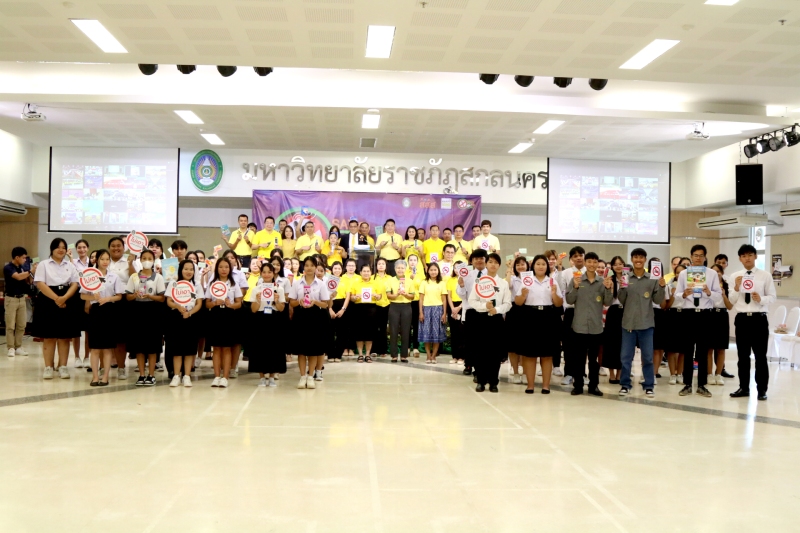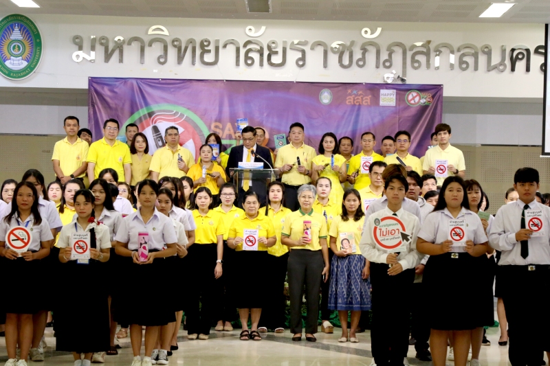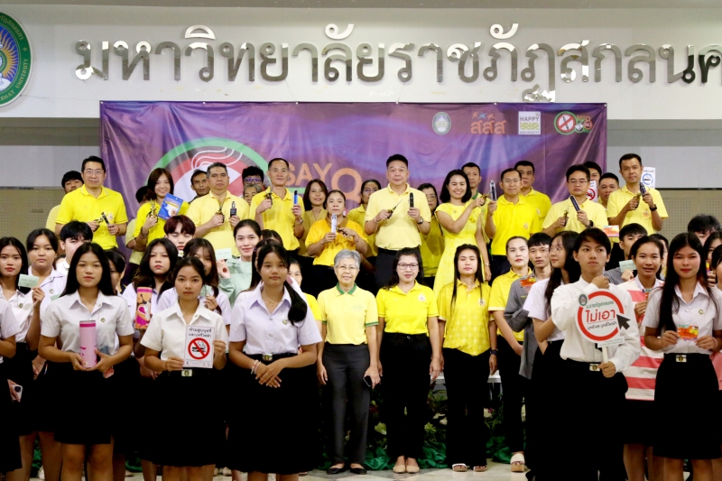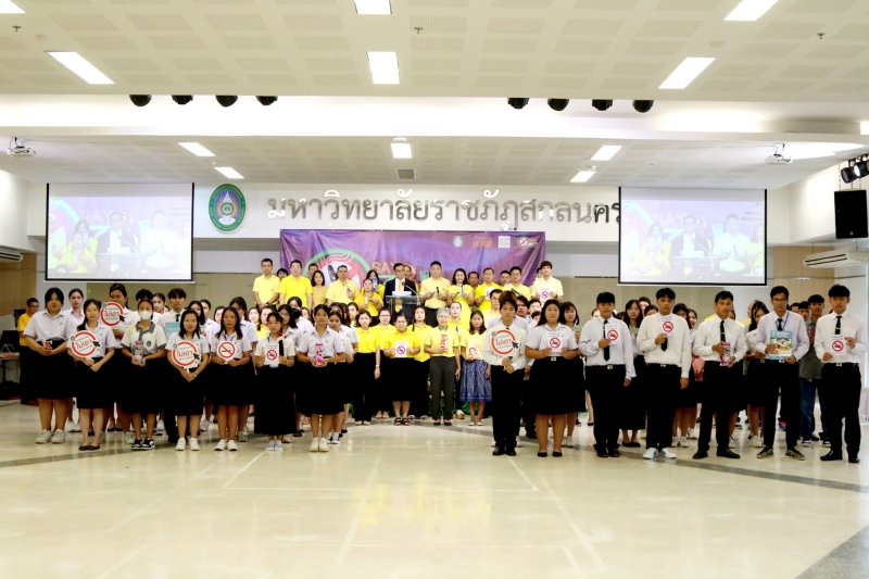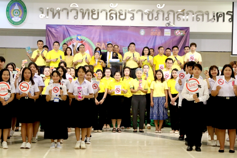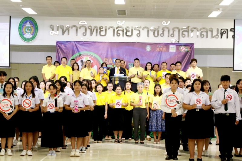 วันพฤหัสบดีที่ 18 กรกฎาคม พ.ศ. 2567 เวลา 08.30 – 10.00 น. มหาวิทยาลัยราชภัฏสกลนคร โดย ผู้ช่วยศาสตราจารย์ชาคริต ชาญชิตปรีชา อธิการบดีมหาวิทยาลัยราชภัฏสกลนคร พร้อมด้วยผู้บริหาร บุคลากรและนักศึกษา เข้าร่วมกิจกรรม ทำดีด้วยหัวใจชาวราชภัฏร่วมต่อต้านภัยบุหรี่ไฟฟ้าในรั้วมหาวิทยาลัย