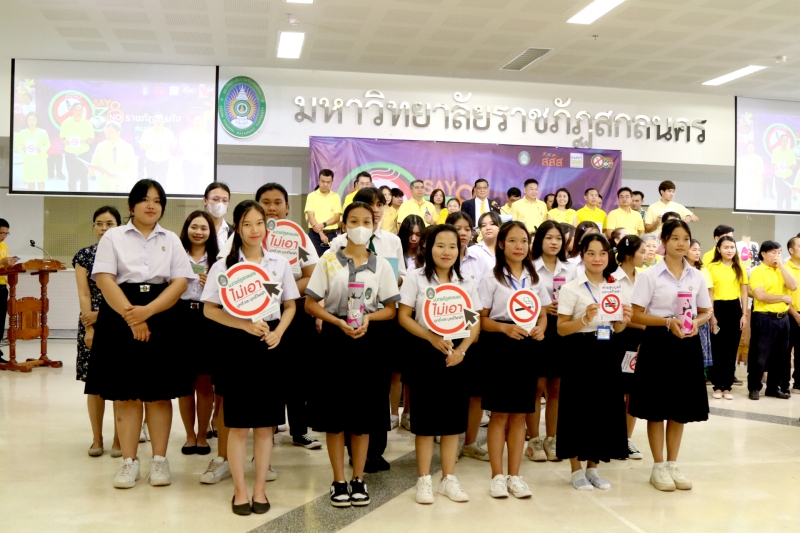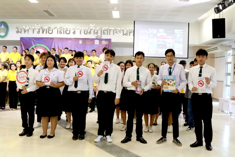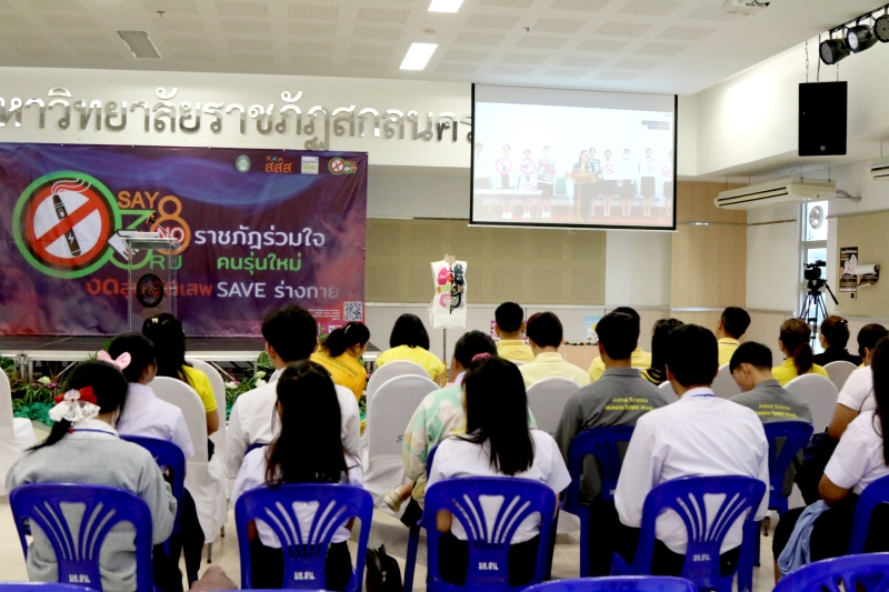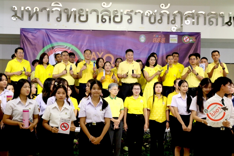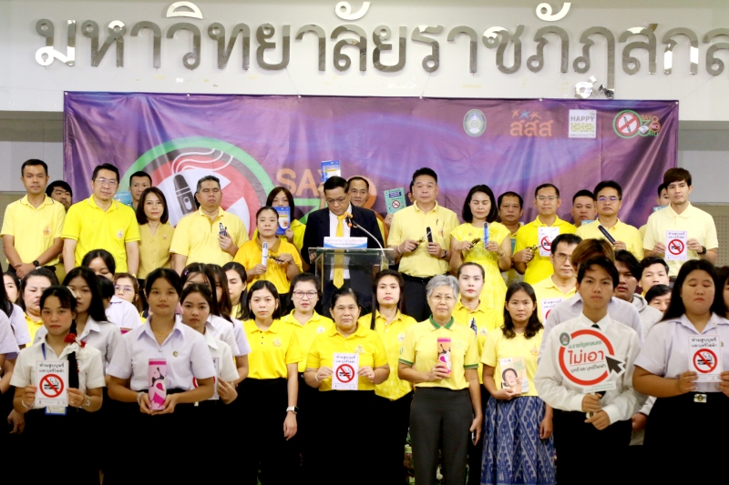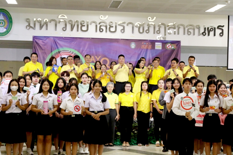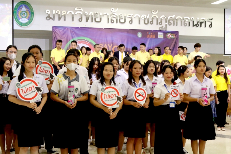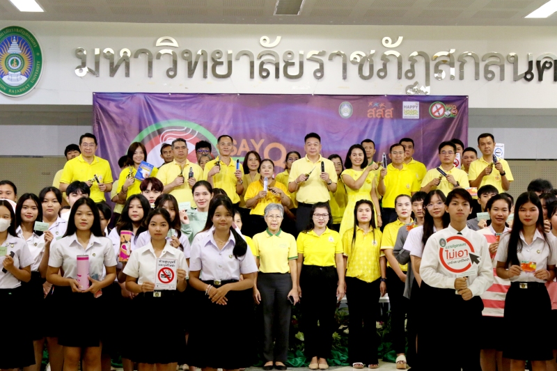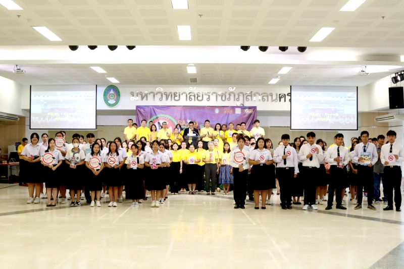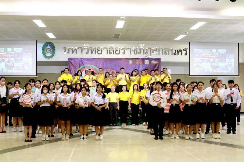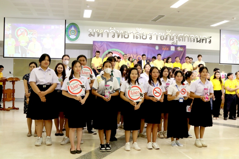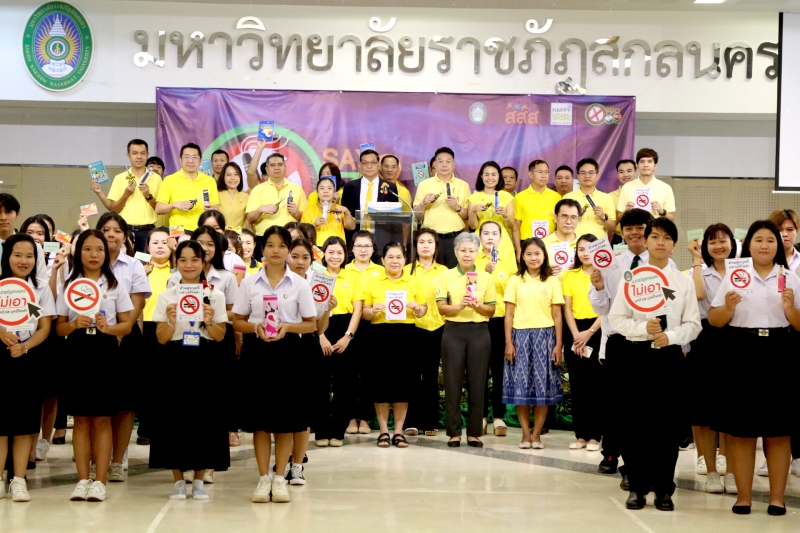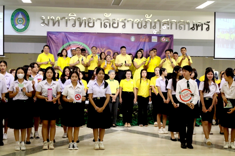 วันพฤหัสบดีที่ 18 กรกฎาคม พ.ศ. 2567 เวลา 08.30 – 10.00 น. มหาวิทยาลัยราชภัฏสกลนคร โดย ผู้ช่วยศาสตราจารย์ชาคริต ชาญชิตปรีชา อธิการบดีมหาวิทยาลัยราชภัฏสกลนคร พร้อมด้วยผู้บริหาร บุคลากรและนักศึกษา เข้าร่วมกิจกรรม ทำดีด้วยหัวใจชาวราชภัฏร่วมต่อต้านภัยบุหรี่ไฟฟ้าในรั้วมหาวิทยาลัย