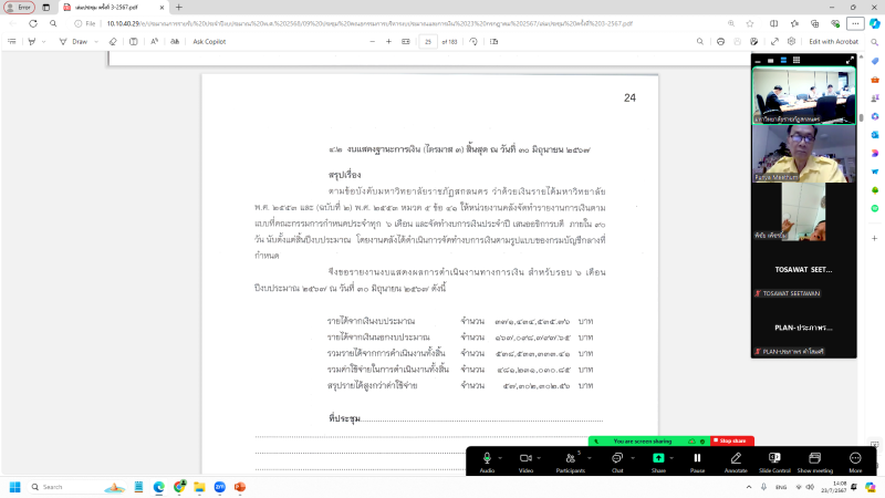 ประชุมคณะกรรมการบริหารงบประมาณและการเงิน ครั้งที่ 3/2567 (23 กรกฎาคม 2567)