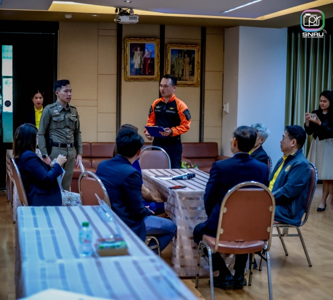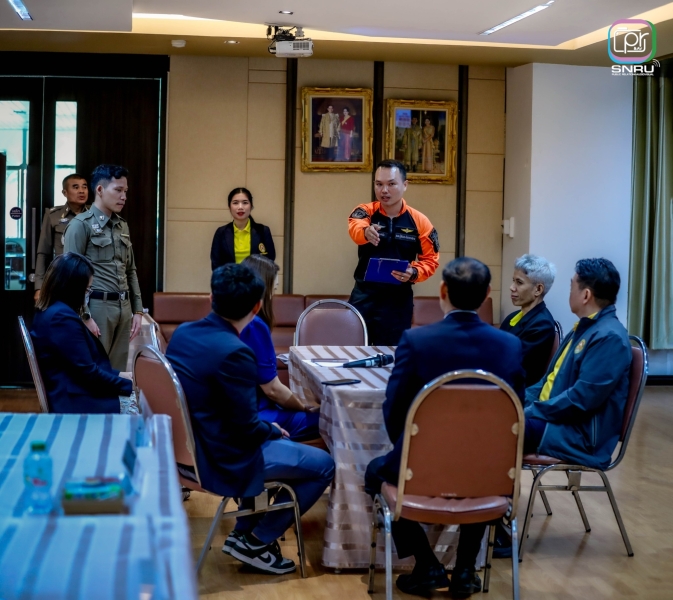 โดย ผศ.รัฐพล ฤทธิธรรม รองอธิการบดีกล่าวเปิดการประชุม และได้รับเกียรติวิทยากรจาก สถานีตำรวจภูธรเมืองสกลนคร และศูนย์ป้องกันและบรรเทาสาธารณภัย เขต 7 สกลนคร เพื่อเป็นแนวทางในการเตรียมความพร้อมการแจ้งเตือนภัย และการดำเนินการช่วยเหลือกรณีเกิดเหตุวิกฤตฉุกเฉินได้อย่างมีประสิทธิภาพ