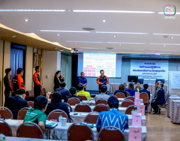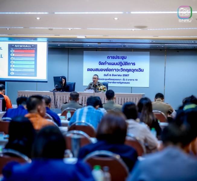วันพฤหัสบดีที่ 8 สิงหาคม พ.ศ. 2567 มหาวิทยาลัยราชภัฏสกลนคร จัดการประชุมจัดทำแผนปฏิบัติการตอบสนองต่อภาวะวิกฤตฉุกเฉิน ณ ห้องประชุมสร้อยสุวรรณา อาคาร 10 มหาวิทยาลัยราชภัฏสกลนคร