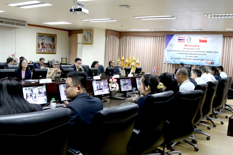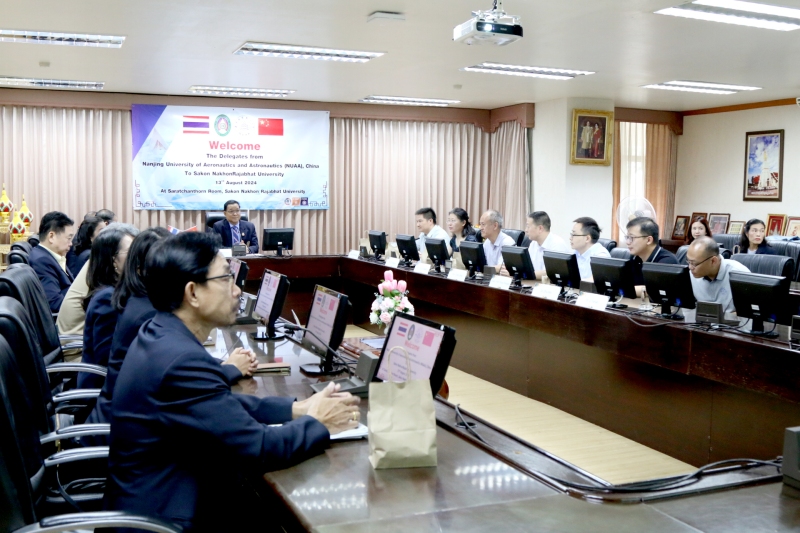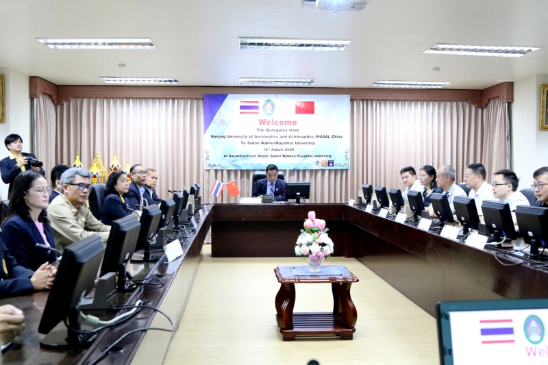 วันอังคารที่ 13 สิงหาคม พ.ศ. 2567 มหาวิทยาลัยราชภัฏสกลนคร โดย ผศ.ชาคริต ชาญชิตปรีชา อธิการบดี พร้อมด้วยผู้บริหาร และอาจารย์ ร่วมให้การต้อนรับคณะนักวิจัยจาก Nanjing University of Aeronautics and Astronautics (NUAA) สาธารณรัฐประชาชนจีน เพื่อแลกเปลี่ยนด้านการดำเนินงานและกิจกรรมร่วมกัน ณ ห้องประชุมสรัสจันทร ชั้น 2 อาคาร 10 มหาวิทยาลัยราชภัฏสกลนคร มหาวิทยาลัยราชภัฏสกลนคร