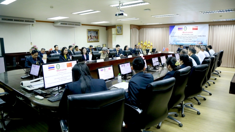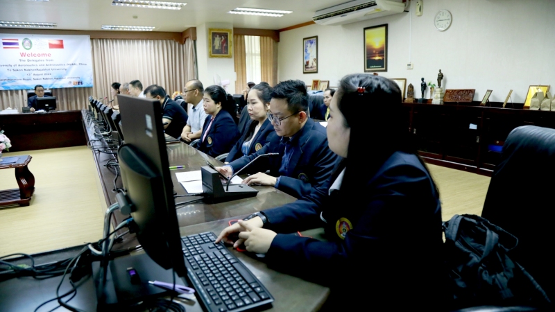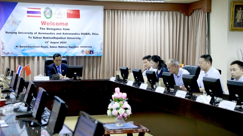 วันอังคารที่ 13 สิงหาคม พ.ศ. 2567 มหาวิทยาลัยราชภัฏสกลนคร โดย ผศ.ชาคริต ชาญชิตปรีชา อธิการบดี พร้อมด้วยผู้บริหาร และอาจารย์ ร่วมให้การต้อนรับคณะนักวิจัยจาก Nanjing University of Aeronautics and Astronautics (NUAA) สาธารณรัฐประชาชนจีน เพื่อแลกเปลี่ยนด้านการดำเนินงานและกิจกรรมร่วมกัน ณ ห้องประชุมสรัสจันทร ชั้น 2 อาคาร 10 มหาวิทยาลัยราชภัฏสกลนคร มหาวิทยาลัยราชภัฏสกลนคร