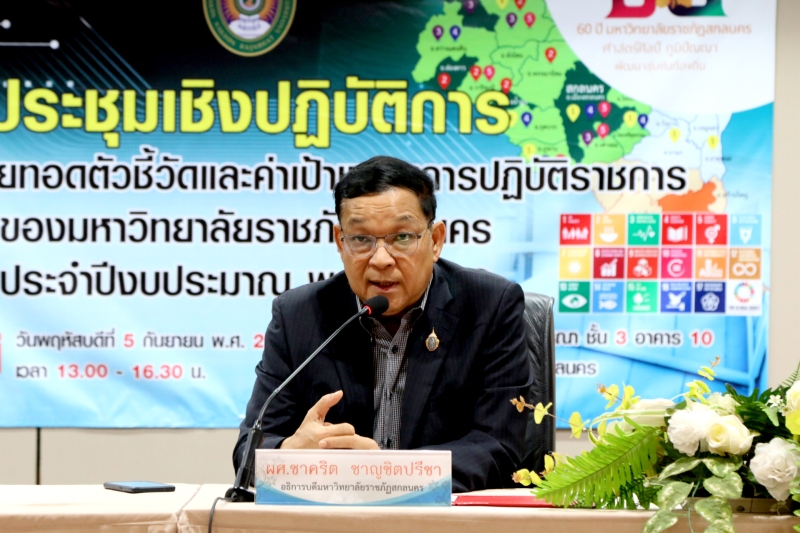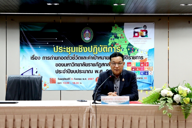 ประชุมเชิงปฏิบัติการ เรื่อง การถ่ายทอดตัวชี้วัดและค่าเป้าหมายการปฏิบัติราชการของ มหาวิทยาลัยราชภัฏสกลนคร ประจำปีงบประมาณ พ.ศ. 2568 (5 กันยายน 2567)