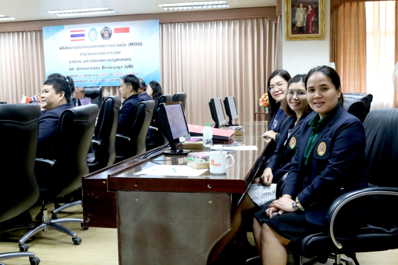 และ Universitas Brawijaya นำโดย Prof. Widodo, S.Si., M.Si., Ph.D. Med.Sc อธิการบดี พร้อมด้วยรองอธิการบดี คณบดี ผู้อำนวยการ และเจ้าหน้าที่จากทั้งสองสถาบันเข้าร่วมอย่างพร้อมเพรียง การลงนามในครั้งนี้มุ่งเน้นการเสริมสร้างความร่วมมือในหลายด้าน ทั้งการแลกเปลี่ยนบุคลากรและนักศึกษา การสร้างหลักสูตรการเรียนการสอนร่วมกัน การพัฒนาเนื้อหาออนไลน์เพื่อสนับสนุนการเรียนการสอนข้ามประเทศ รวมถึงการวางแผนสร้างหลักสูตรปริญญาคู่ (Dual Degree) ในอนาคต ซึ่งจะเป็นการเสริมสร้างความแข็งแกร่งด้านการเรียนการสอนและการวิจัยของทั้งสองสถาบัน พร้อมทั้งขยายโอกาสให้แก่นักศึกษาและบุคลากรในการเข้าถึงองค์ความรู้และประสบการณ์ระดับนานาชาติ ความร่วมมือในครั้งนี้นับเป็นก้าวสำคัญในการพัฒนามหาวิทยาลัยราชภัฏสกลนครและ Universitas Brawijaya ให้ก้าวสู่ความเป็นสากล ผ่านการแลกเปลี่ยนทรัพยากรและองค์ความรู้จากทั้งสองประเทศ ซึ่งจะนำไปสู่การพัฒนาทางการศึกษาและการสร้างความสัมพันธ์อันดีระหว่างสองมหาวิทยาลัยในระยะยาว