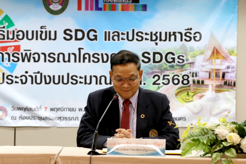วันที่ 7 พฤศจิกายน พ.ศ. 2567 เวลา 13.30 – 16.30 น. กองนโยบายและแผน จัดพิธีมอบเข็ม SDG และประชุมหารือการพิจารณาโครงการ SDGs ประจำปีงบประมาณ พ.ศ. 2568 ณ ห้องประชุมสร้อยสุวรรณา ชั้น 3 อาคาร 10 มหาวิทยาลัยราชภัฏสกลนคร