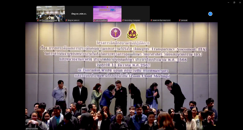วันที่ 13 ธันวาคม พ.ศ. 2567 เวลา 08.50 น. มหาวิทยาลัยราชภัฏสกลนคร โดย ผู้ช่วยศาสตราจารย์ชาคริต ชาญชิตปรีชา อธิการบดีมหาวิทยาลัยราชภัฏสกลนคร พร้อมผู้บริหาร และบุคลากรที่เกี่ยวข้อง เข้าร่วมโครงการฝึกอบรมเชิงปฏิบัติการ เรื่อง การยกระดับผลการประเมินคุณธรรมและความโปร่งใสในการดำเนินงานของหน่วยงานภาครัฐ (ITA) ประจำปีงบประมาณ พ.ศ. 2568 ผ่านสื่ออิเล็กทรอนิกส์โปรแกรม ZOOM Meeting